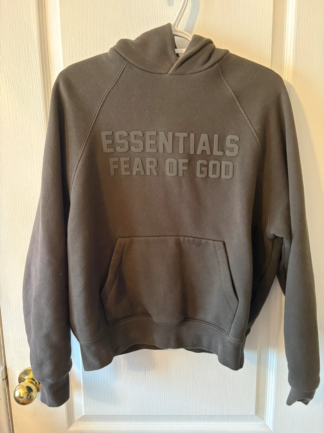 This is a Fear of God Essentials hoodie. It's a comfortable pullover with a front pouch pocket. Offers a relaxed fit. XS. Brand new condition. SFH. Paid $250 plus tax, asking $150