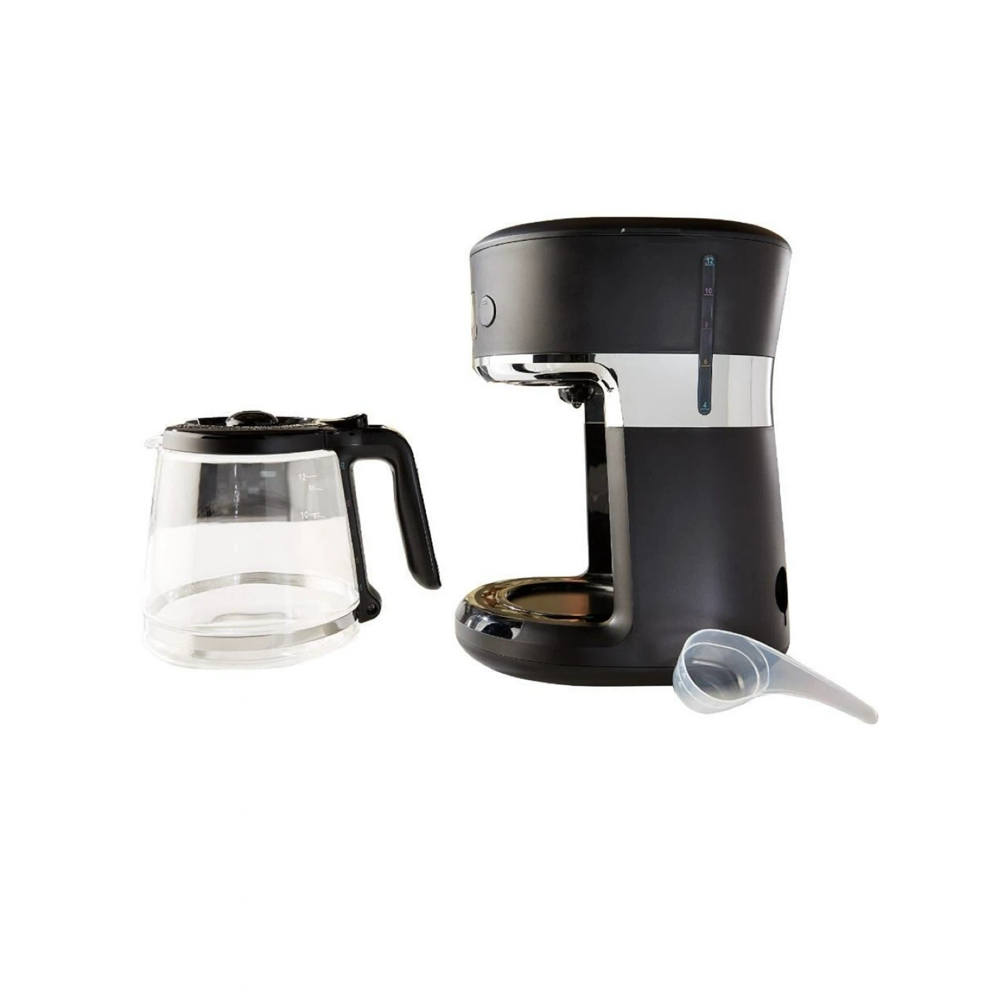This Oster coffee maker brews up to 12 cups. It features a digital display for easy programming and a glass carafe. Includes a measuring scoop.