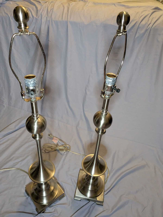 Matching brushed nickel lamps. Good condition no lampshades. Asking $20 OBO from a smoke-free pet-free home. I just don't have any use for them anymore.