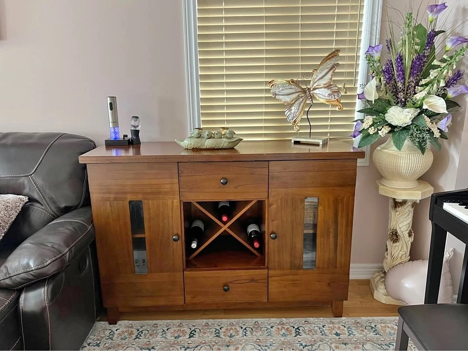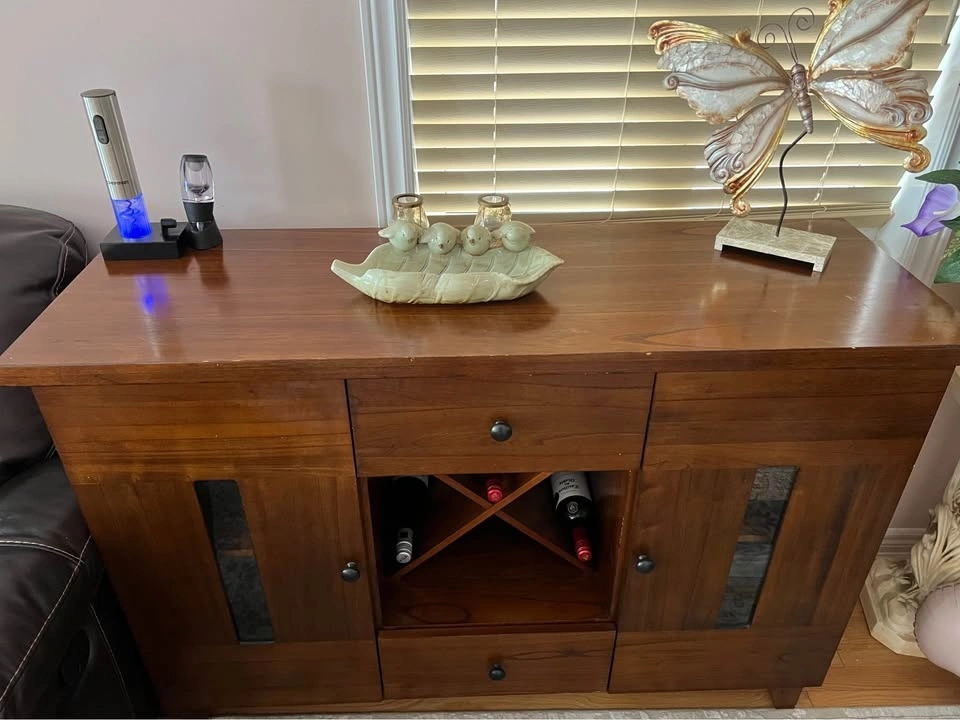 Buy & SellWooden Cabinet With Wine Rack and StorageWooden Cabinet With Wine Rack and Storage$200Solid wood. Originally purchased from The Brick. Dimensions: 53" L x 18" W x 37" H.WHERE TO MEETDixie and Father TobinView MapSELLERPriMayfield120 reviews0 chats·0 favorites·84 viewsSEND CHAT TO SELLERHi Pri! I’m interested in your listing.Hi Pri! I’m interested in your listing.Get the Karrot app to chatSign In to chat