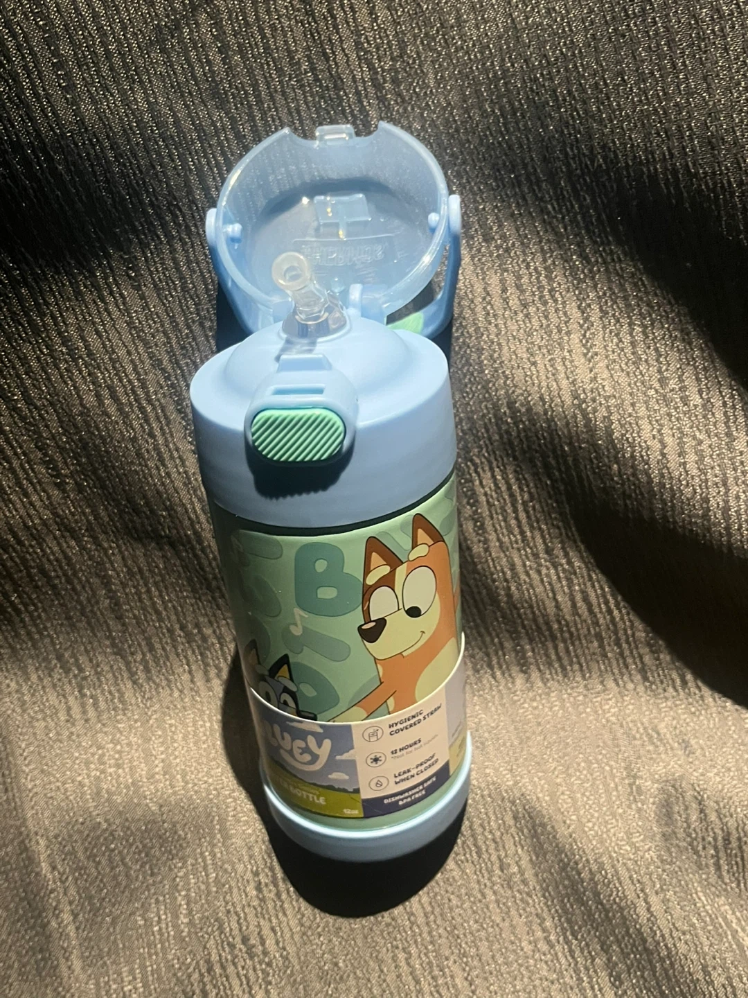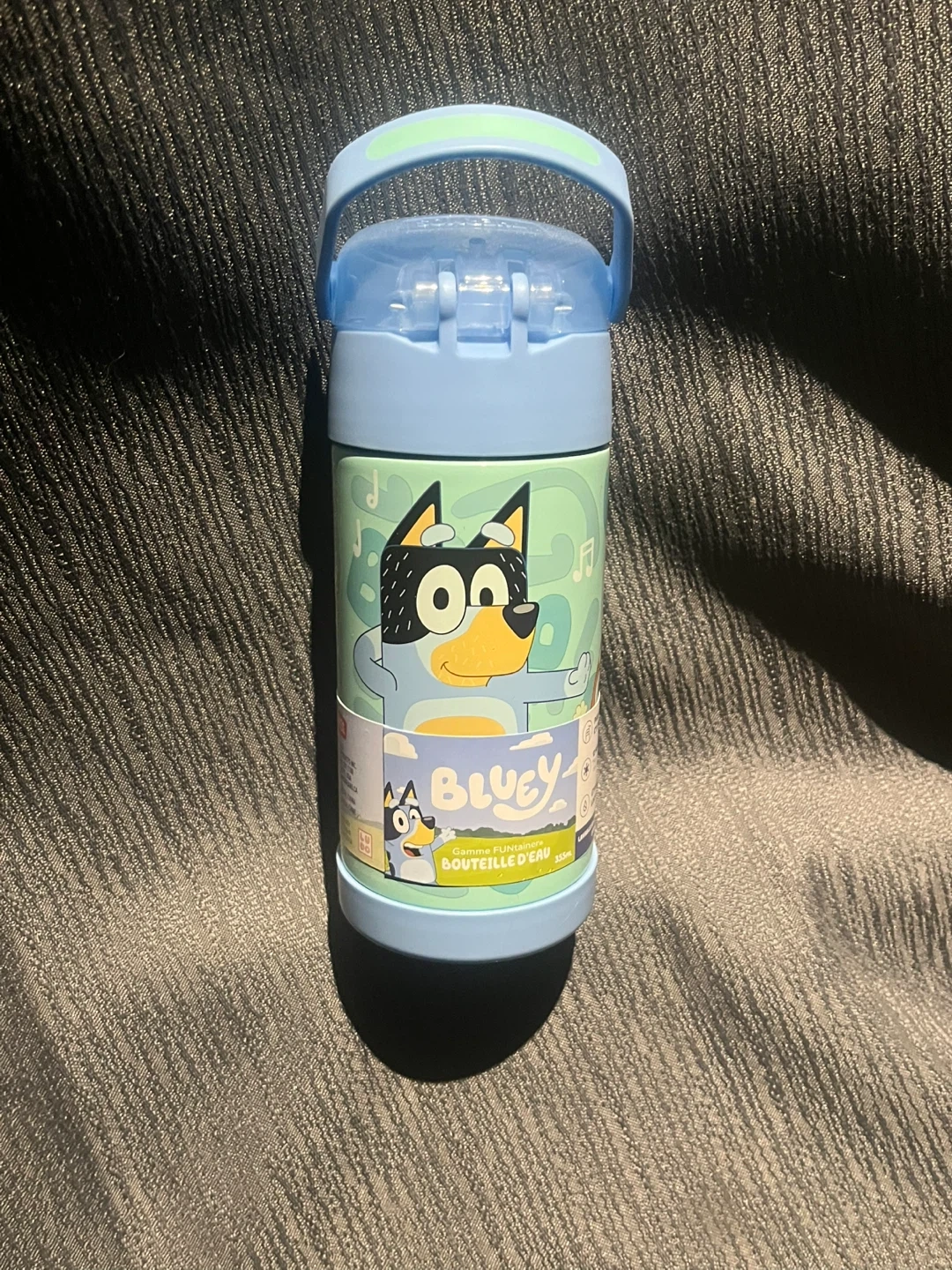 This Bluey water bottle is perfect for little ones. It features a fun character design and a convenient straw lid. Made for kids, it's great for school or outings!