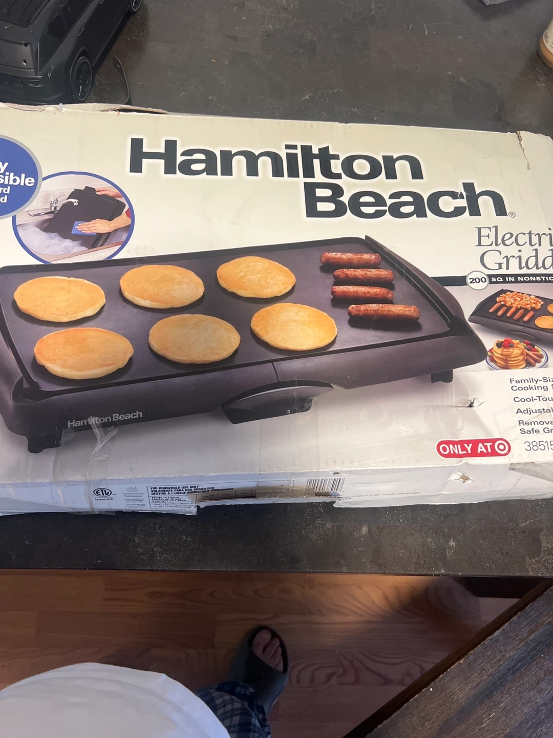 Selling a Hamilton Beach Electric Griddle. It has a 200 sq in nonstick surface. It's family-sized for cooking and has cool-touch sides. It also features adjustable and removable safe griddles