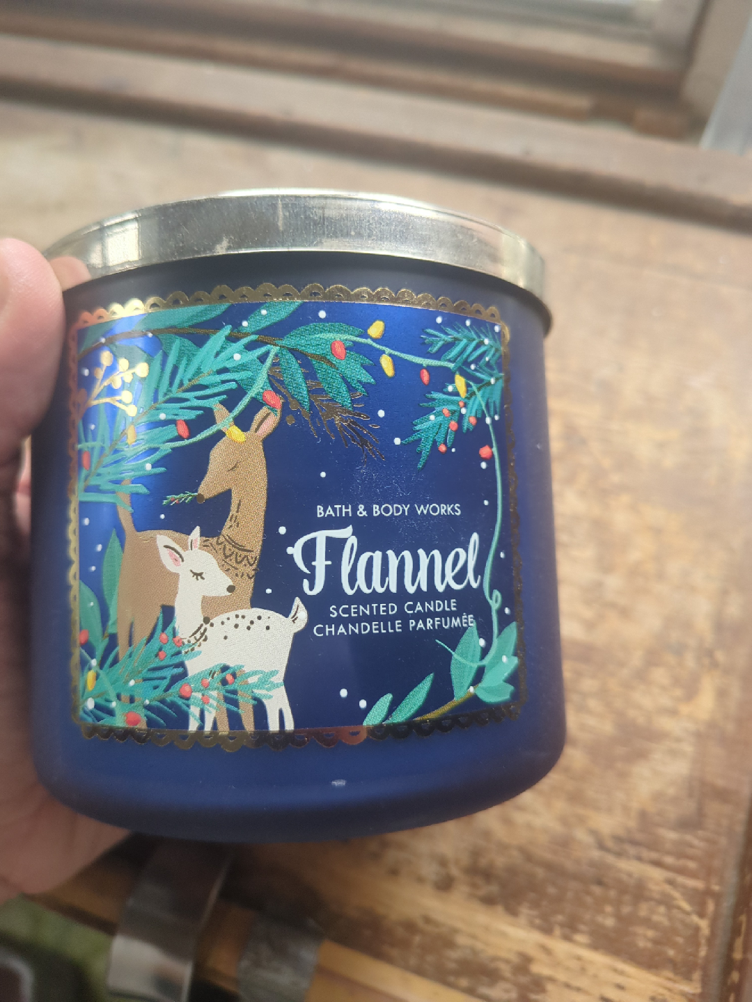 Selling a Bath & Body Works Flannel scented candle! It's a lovely scented candle, perfect for creating a cozy atmosphere in your home
