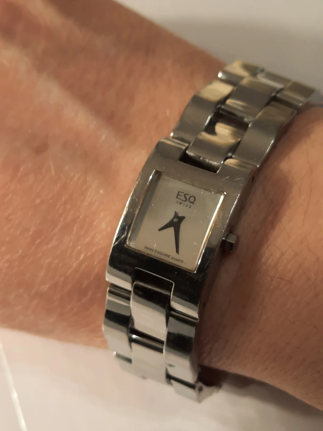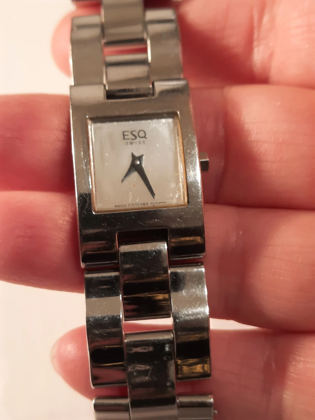 This ESQ Swiss watch is made from all stainless steel. It features a water-resistant design. Swiss quartz movement ensures reliable timekeeping. It's a great accessory for everyday wear!not new,but looking great.not used.clean condition.