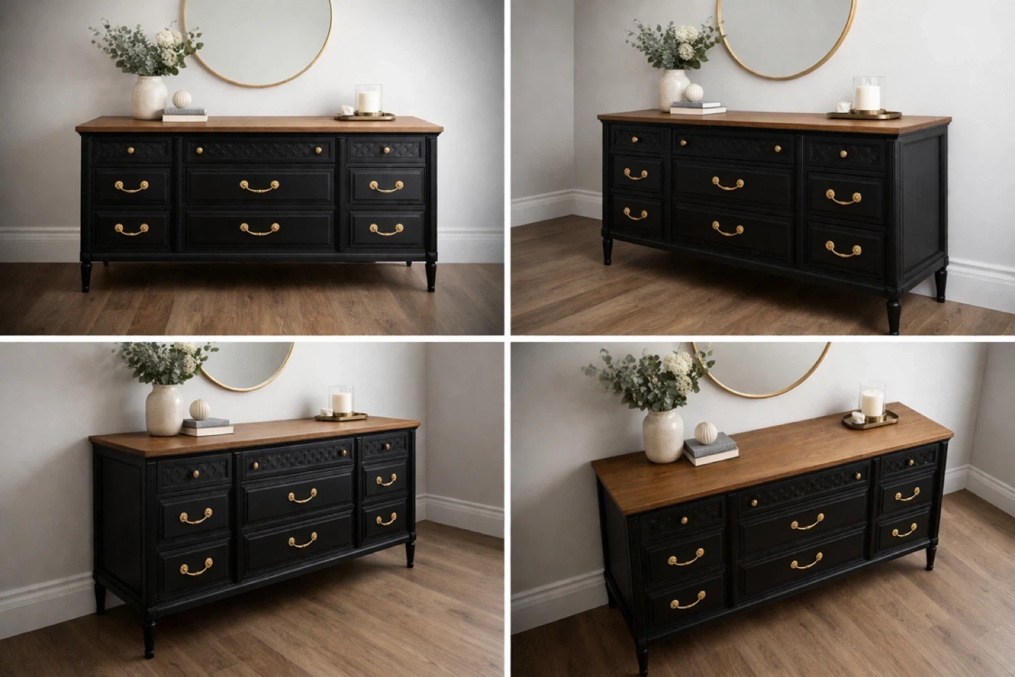 Modern Solid Wood Black & Walnut Dresser – Fully Refinished