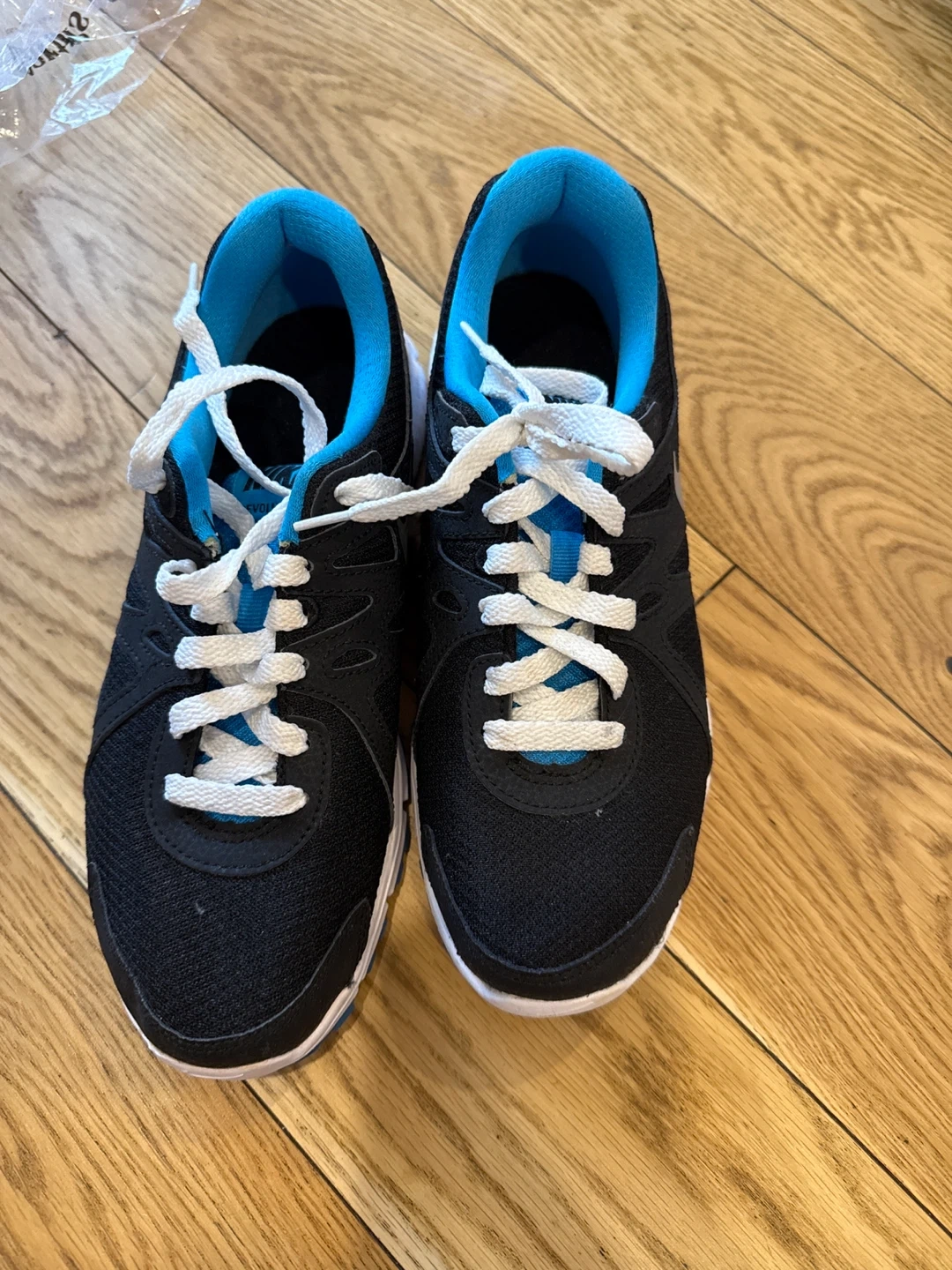 Selling a pair of Nike Revolution 2 running shoes in black and blue. They're in great shape and ready for someone new to enjoy! Perfect for running or everyday wear.