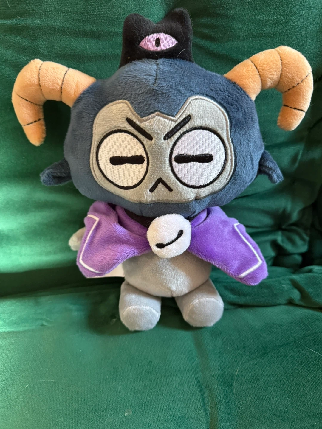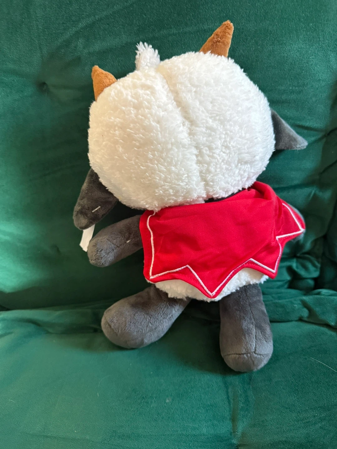 This is a plush toy featuring a character from Cult of the Lamb. It's soft and huggable. It's a great collectible for fans of the game!