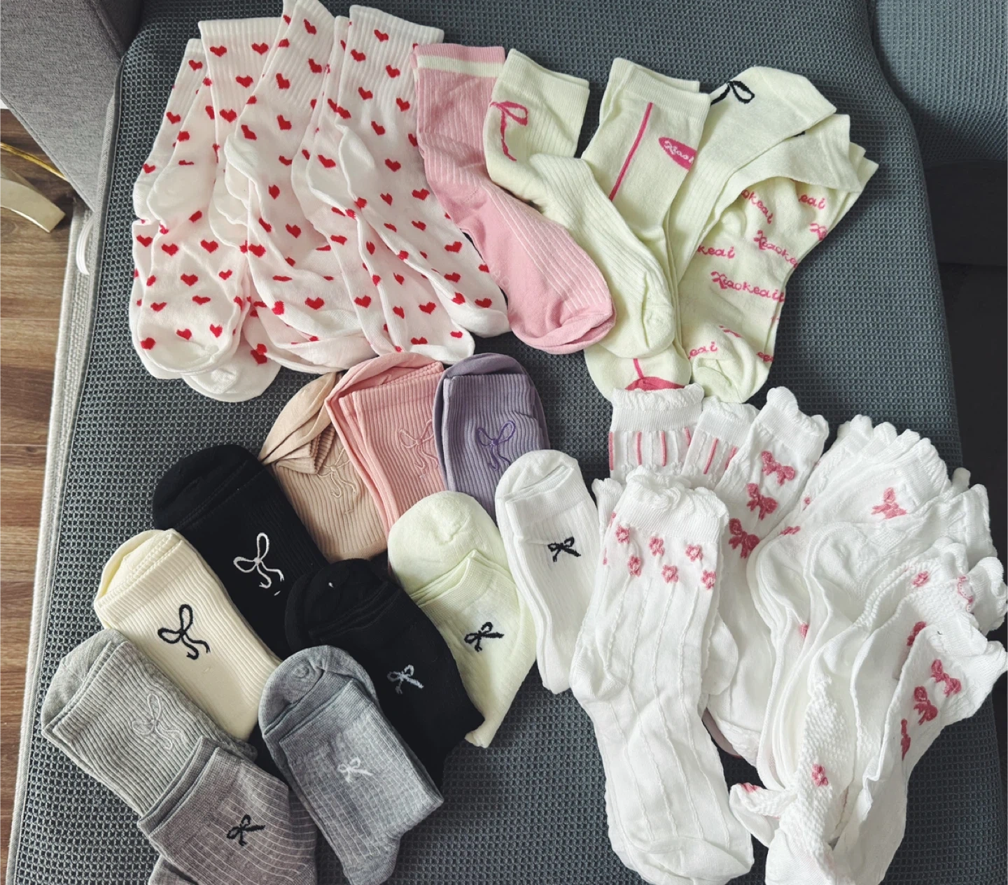 Cute socks bundle β 31 pairs total.
