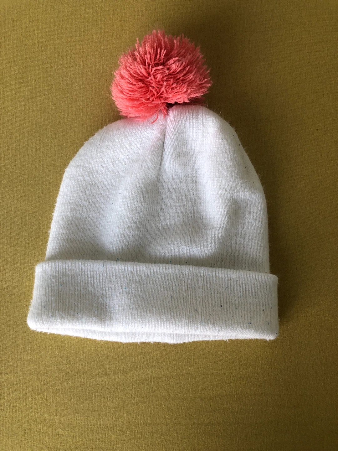 White knit beanie hat from Jacob's Creek. Features a coral-pink pom pom on top. It's a cosy accessory for cooler weather. Machine washable. Check out my other postings, Combo deals and great discounts when purchasing 2 or more items.