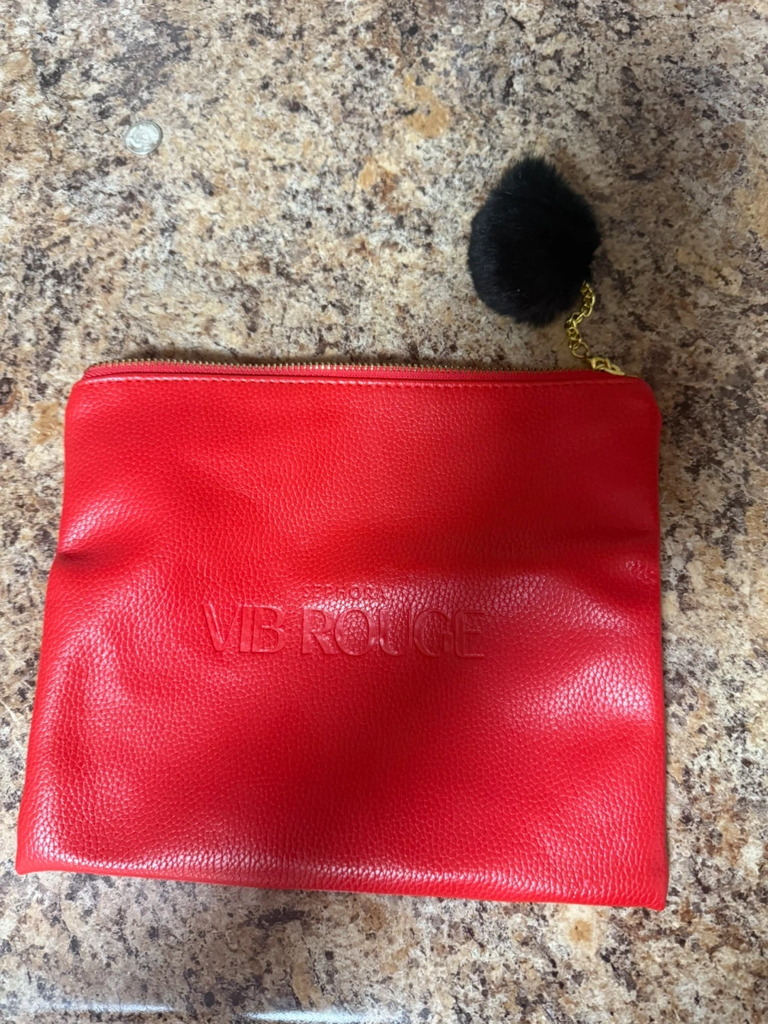 Selling a bright red Sephora VIB Rouge pouch! It's perfect for storing makeup or other small items. The pouch has a gold zipper and a black interior lining. It's in great condition and ready for a new owner!
