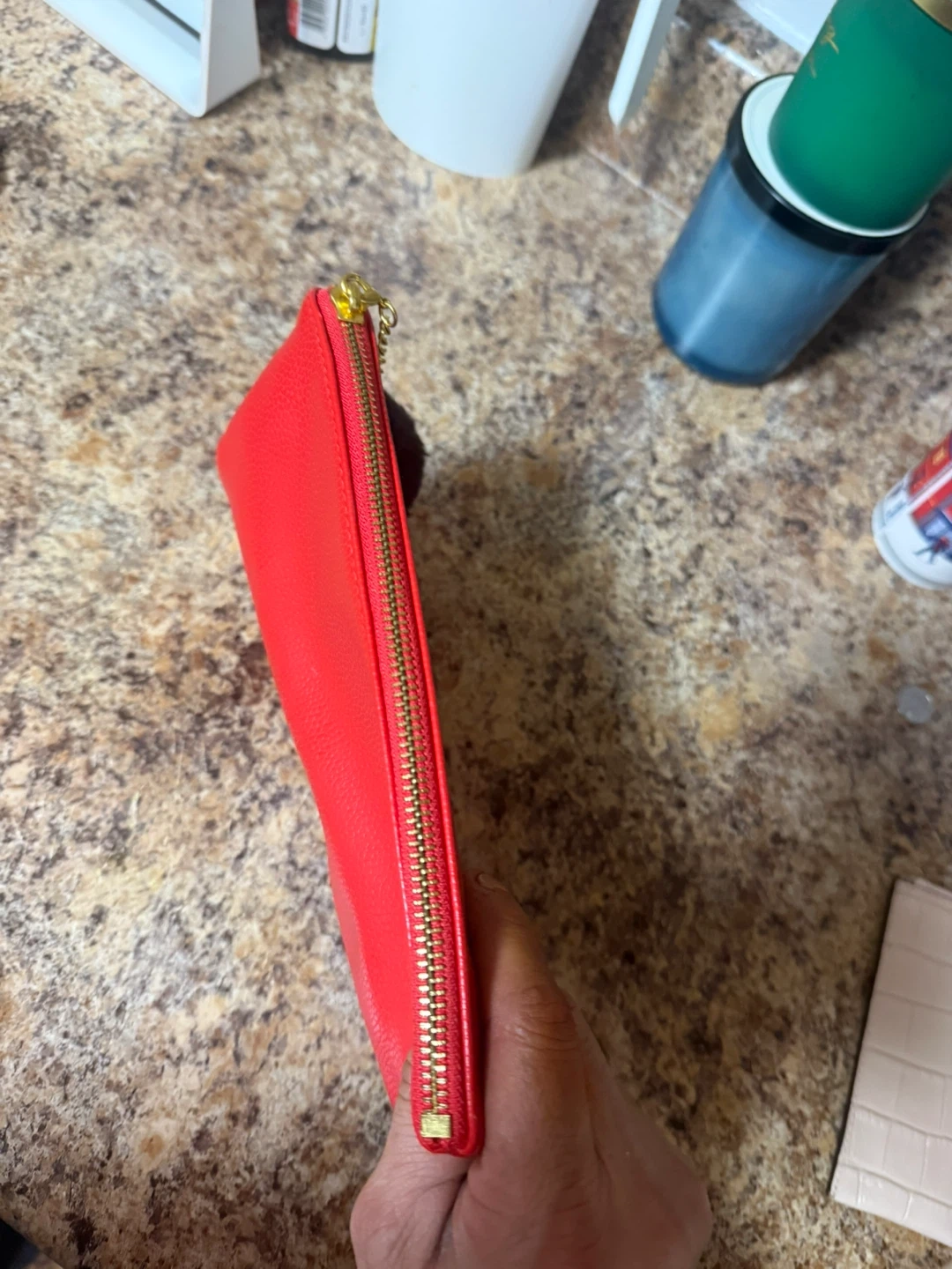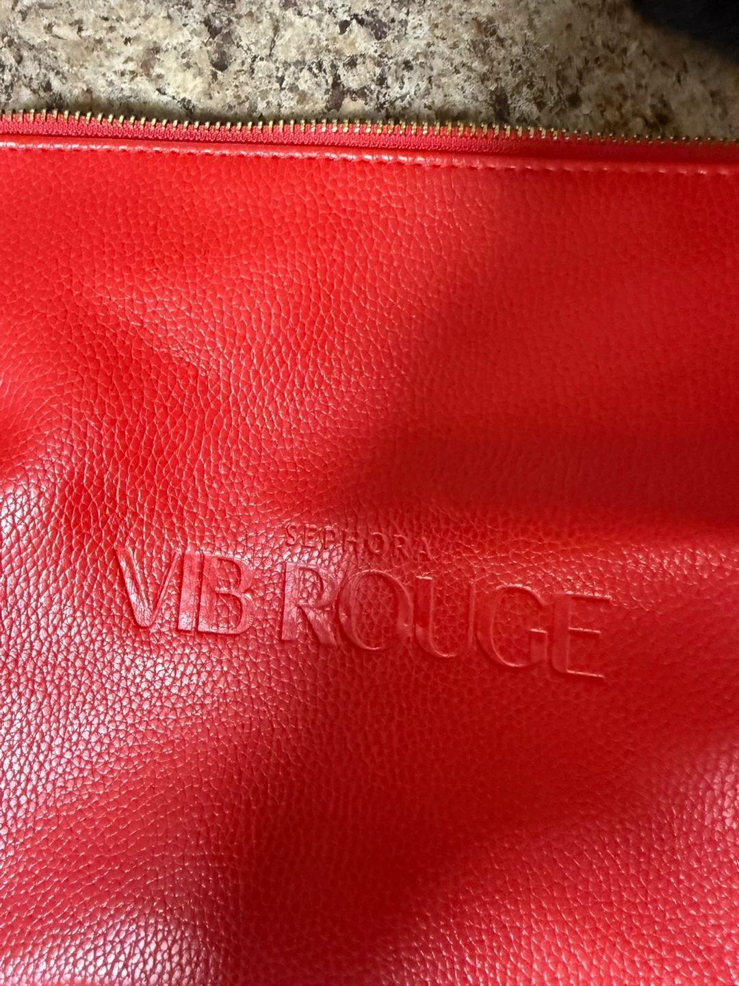 Selling a bright red Sephora VIB Rouge pouch! It's perfect for storing makeup or other small items. The pouch has a gold zipper and a black interior lining. It's in great condition and ready for a new owner!