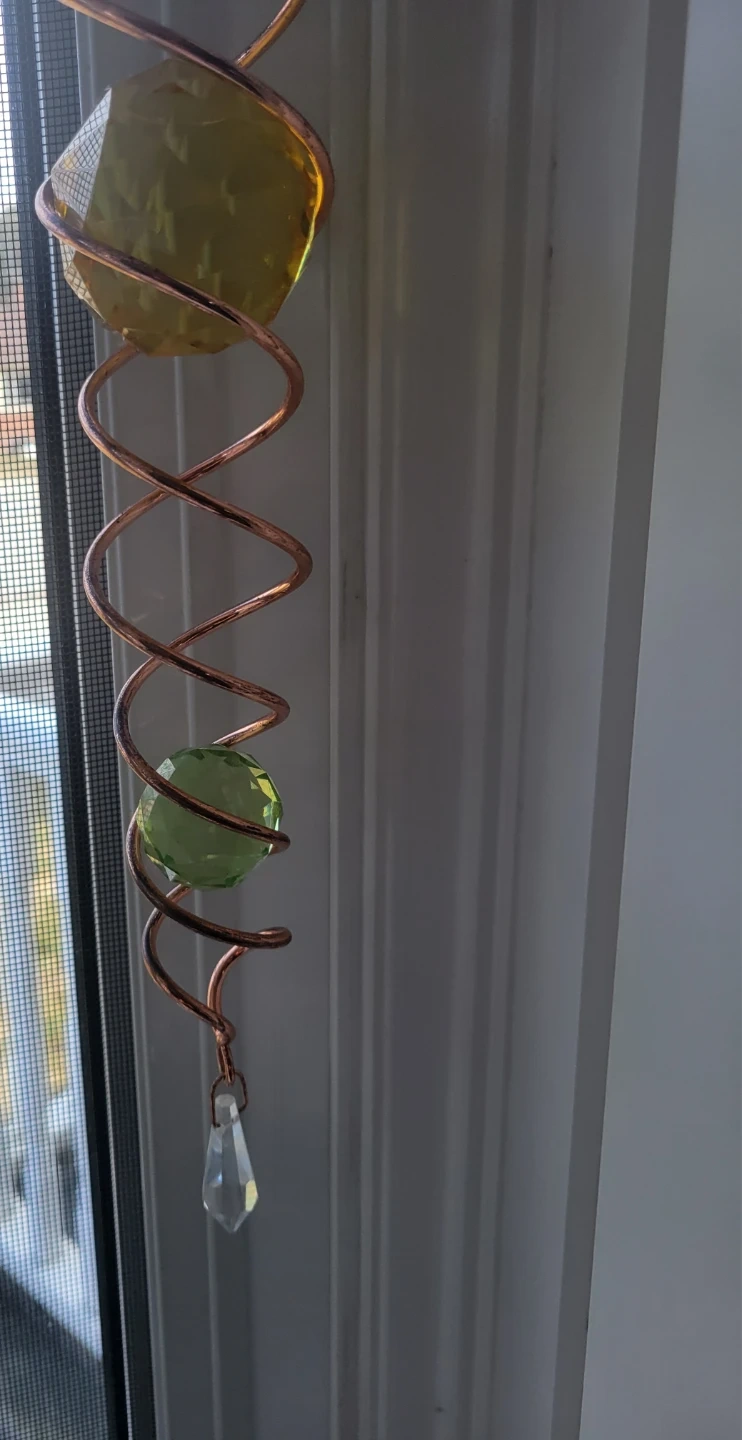 Copper Spiral Hanging Decor with Crystals. garden.Suncatcher