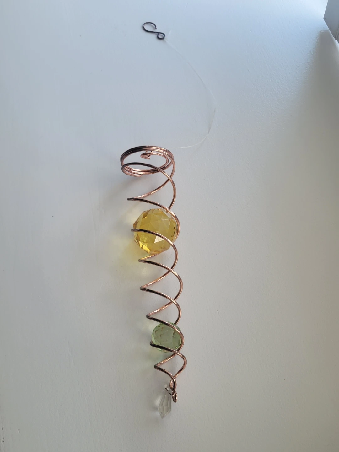Copper Spiral Hanging Decor with Crystals. garden.Suncatcher