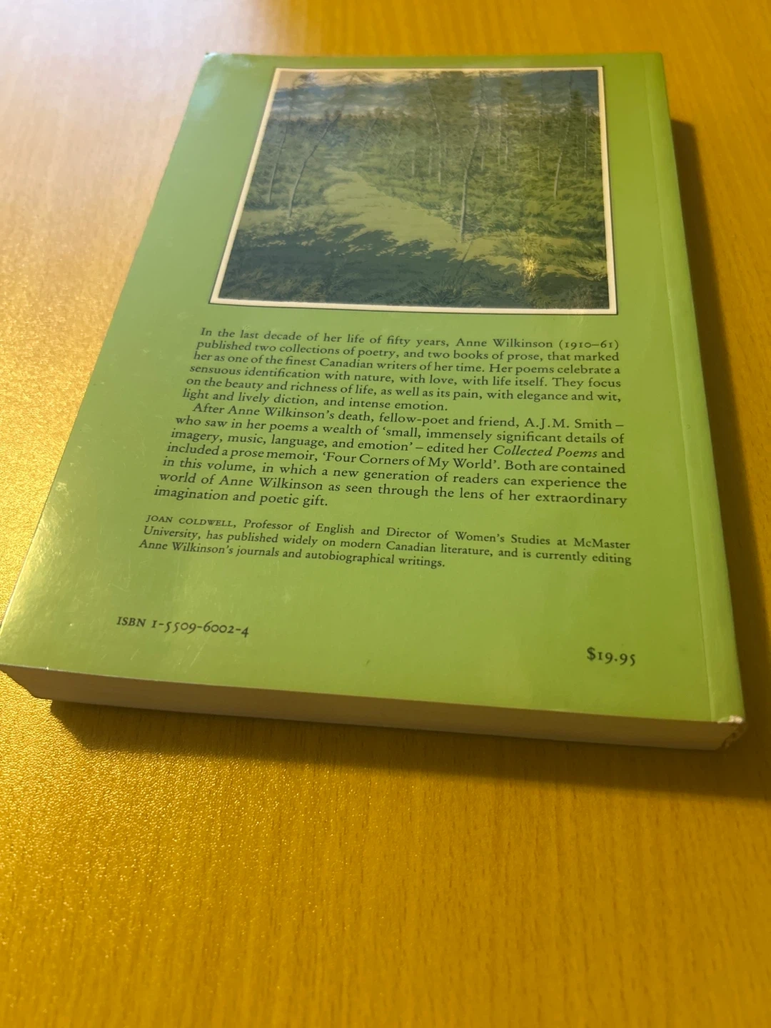 This book features the poetry and a prose memoir by Anne Wilkinson. It includes "Collected Poems and "Four Corners of My World".