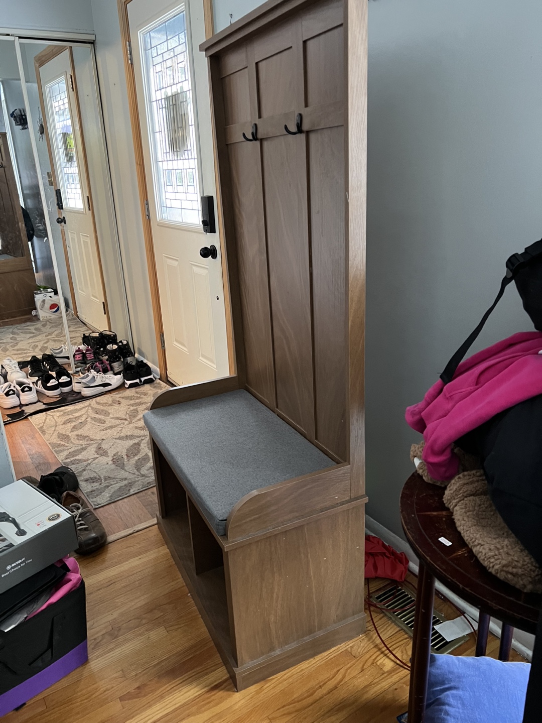 Buy & SellHall Tree with Bench and StorageHall Tree with Bench and Storage$150Dark brown hall tree. Features a cushioned seat, two storage compartments below, and three hooks on the back. Great for entryways.ConditionLike newWHERE TO MEETPrince and MatchettView MapSELLERverifiedJennSandwich600 reviews0 chats·0 favorites·23 viewsSEND CHAT TO SELLERHi Jenn! I’m interested in your listing.Hi Jenn! I’m interested in your listing.Get the Karrot app to chatSign In to chat