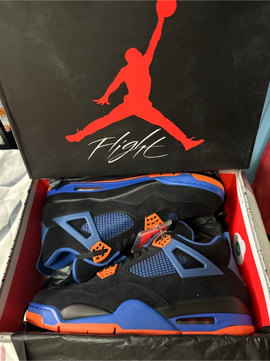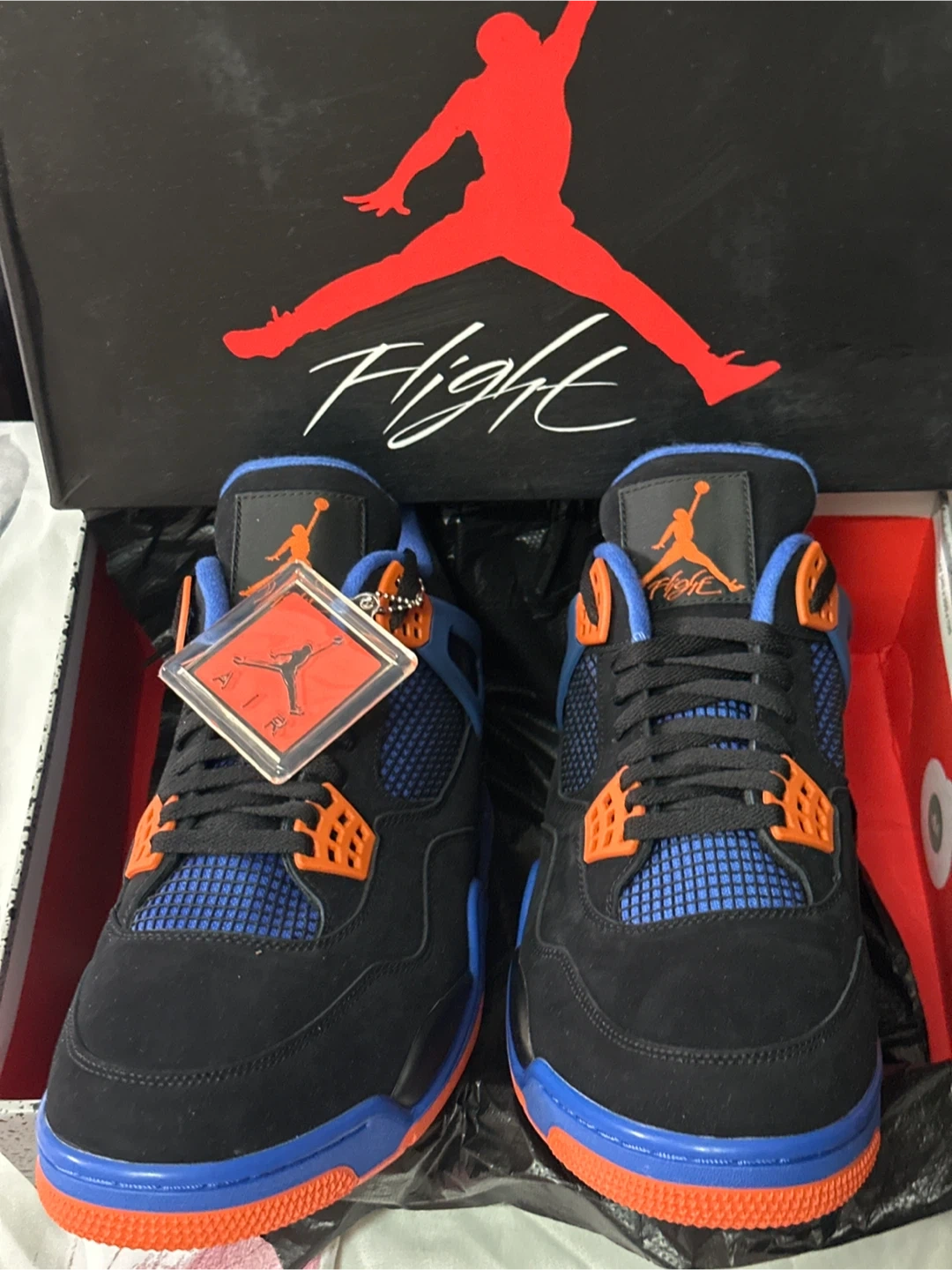 Buy & SellAir Jordan 4 "Flight" Black Blue OrangeAir Jordan 4 "Flight" Black Blue Orange$150Men's Air Jordan 4 sneakers in black, blue, and orange. Features Jumpman logo detail and comes with original box. Lace-up closure.ConditionNewSize13BrandAir JordanWHERE TO MEETCheck LocationView MapSELLERverifiedJimmy TamBowery893 reviews3 chats·0 favorites·55 viewsSEND CHAT TO SELLERHi Jimmy Tam! I’m interested in your listing.Hi Jimmy Tam! I’m interested in your listing.Get the Karrot app to chatSign In to chat