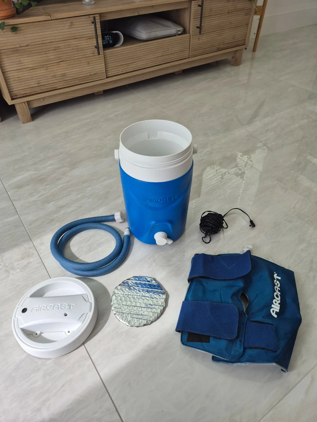 The Aircast Cryo/Cuff IC Cooler is a motorised unit that provides 6 - 8 hours of cryotherapy.