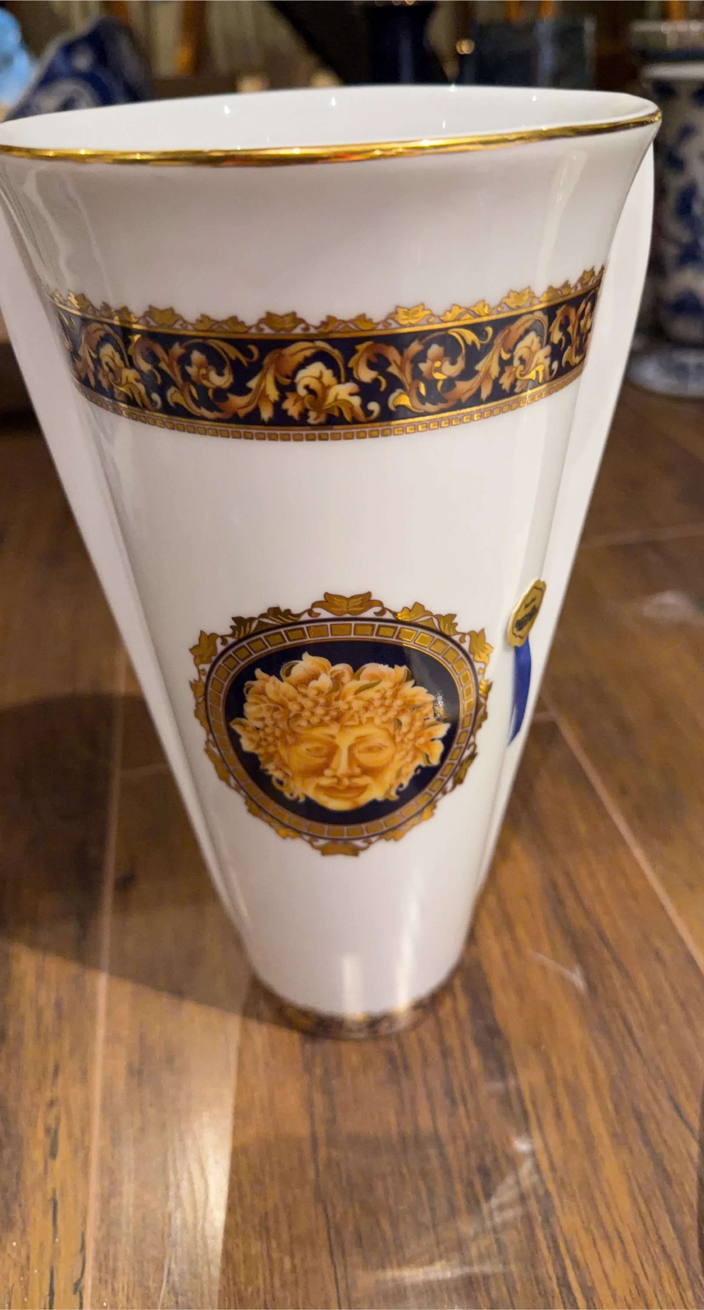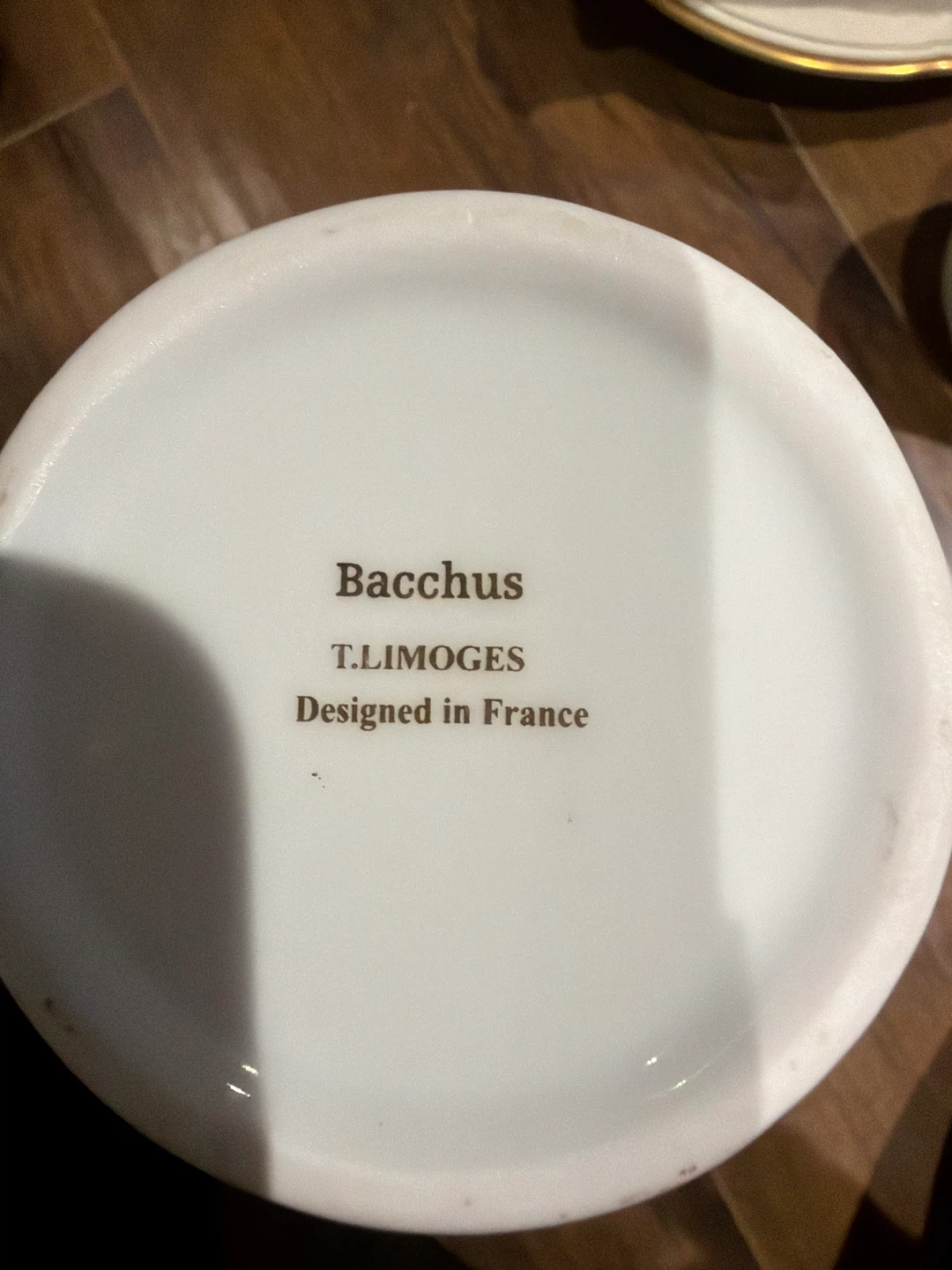 Selling a beautiful Bacchus T.Limoges vase! It's designed in France. White porcelain, featuring a gold laurel motif with blue and gold detailing. Perfect for adding a touch of elegance to your home decor