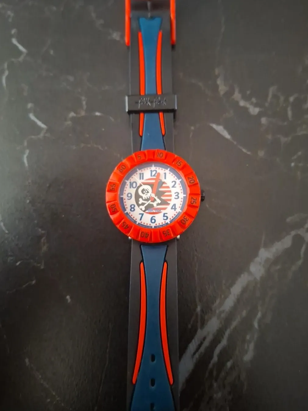 Buy & SellFlik Flak Watch - Swiss MadeFlik Flak Watch - Swiss Made$8This Flik Flak watch features a fun skull design on the dial. It's Swiss made with a water-resistant casing. The watch has a blue and orange strap.ConditionGoodBrandFlik FlakWHERE TO MEETaldergroveView MapSELLERverifiedChrisAldergrove862 reviews0 chats·0 favorites·4 viewsSEND CHAT TO SELLERHi Chris! I’m interested in your listing.Hi Chris! I’m interested in your listing.Get the Karrot app to chatSign In to chat