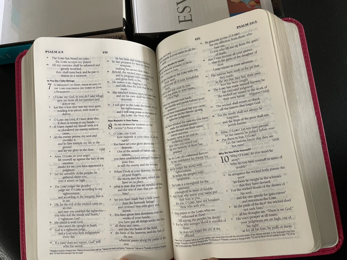 -From smoke free, pet free home -Excellent condition -English Standard Version -Compact TruTone Bible in pink -Pick up only