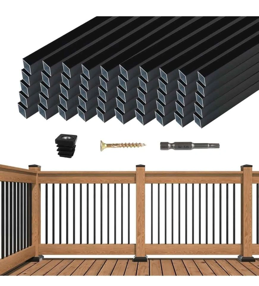 Brand new 50 pack of 36 inch black aluminum deck railing balusters. These are square spindles with a 3/4 inch diameter, hollow for wood and composite decks. WT13 model.