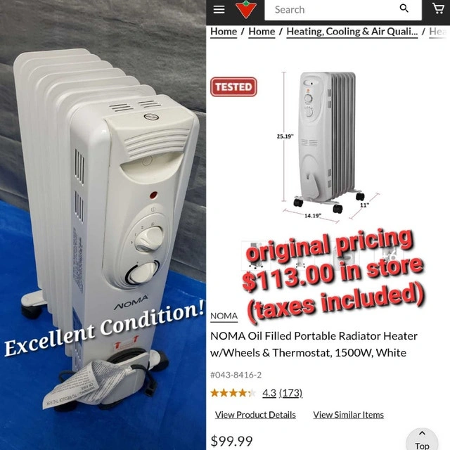 ✴️ I'm asking $70 for this bundle, a steal considering the heater alone retails for $113 plus taxes and the shelf for $34 plus taxes at Canadian Tire and IKEA respectively. Both items are in excellent working order and ready to go!