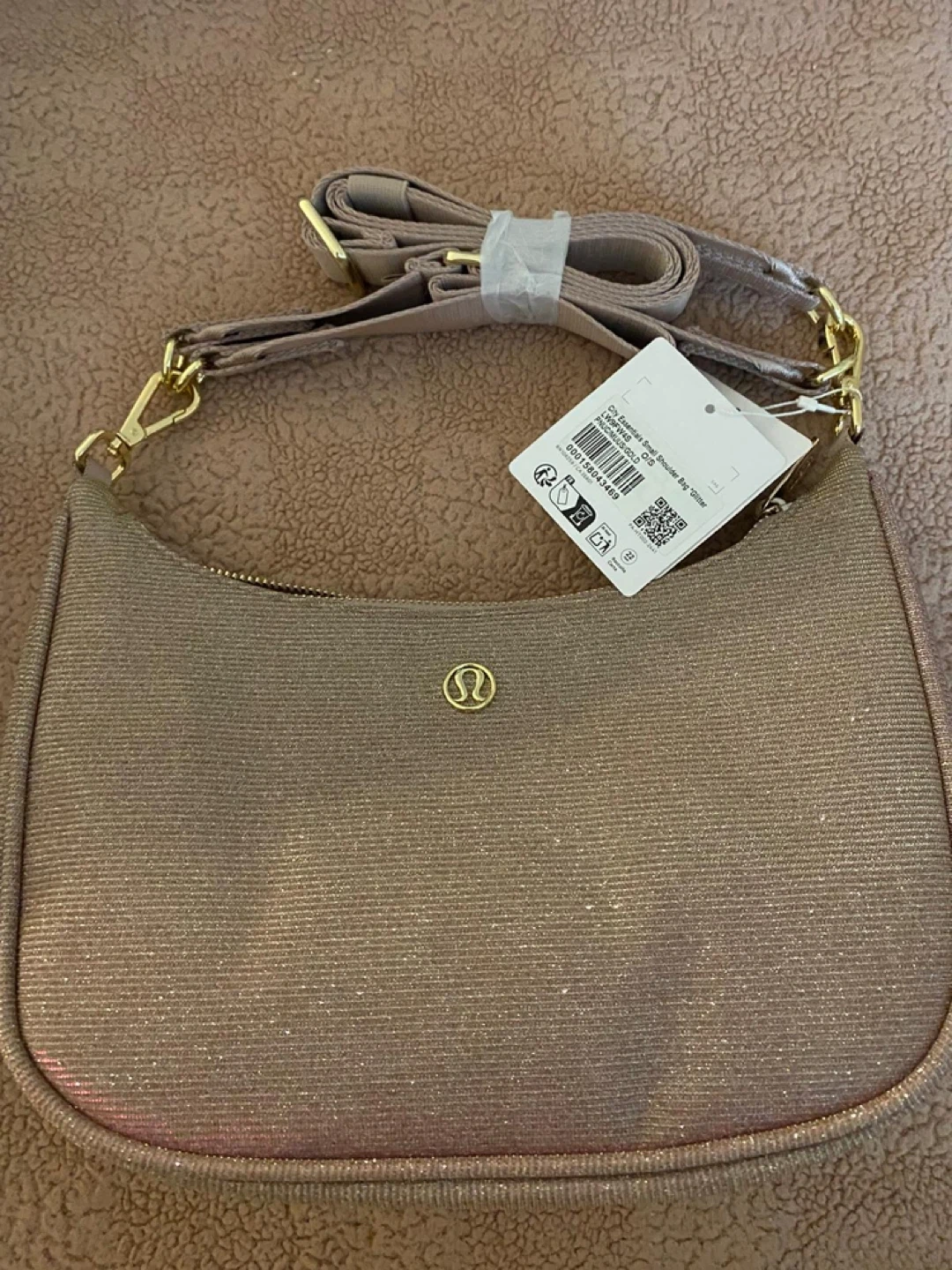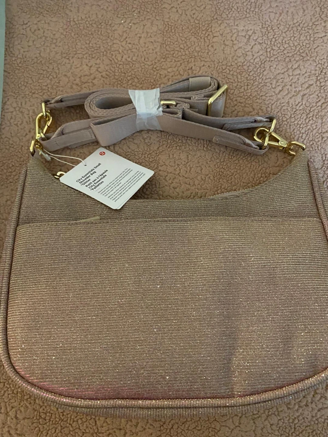 Lululemon City Essentials Glitter Bag 3L NWT Pink Champagne/Gol
