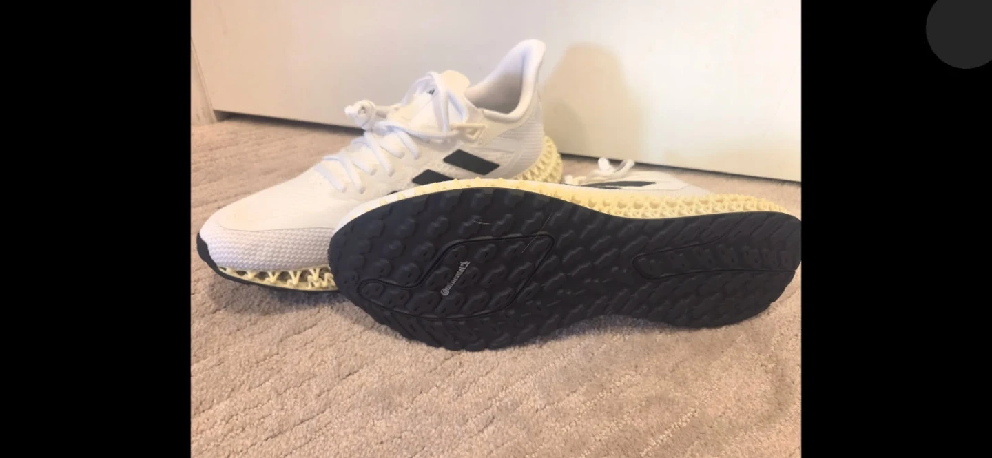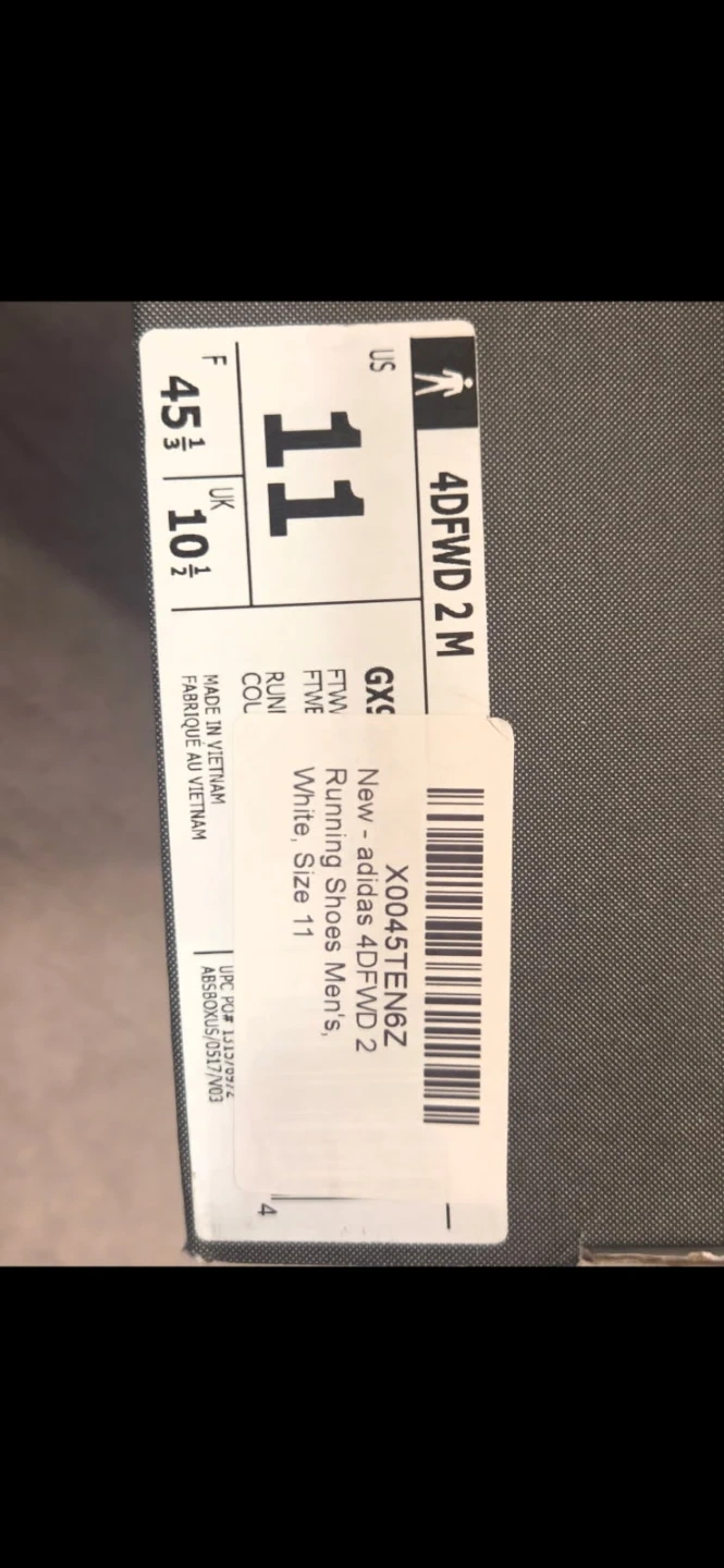 These Adidas 4DFWD 2 running shoes are in a men's size 11 and are white. They feature a Continental rubber outsole for excellent grip. Made in Vietnam. Comes with original box.