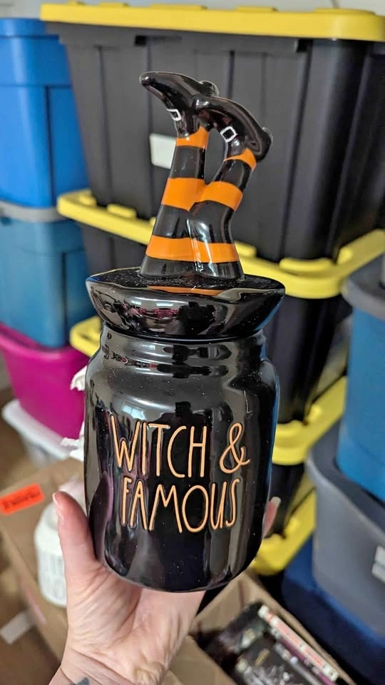 Buy & SellRae Dunn Witch & Famous Halloween CanisterRae Dunn Witch & Famous Halloween Canister$25Brand new Rae Dunn Halloween canister. Has 'Witch & Famous' on the front and a cute lid with witch legs. Never used.WHERE TO MEETCheck LocationView MapSELLERjillDiver Lake150 reviews0 chats·0 favorites·0 viewsSEND CHAT TO SELLERHi jill! I’m interested in your listing.Hi jill! I’m interested in your listing.Get the Karrot app to chatSign In to chat