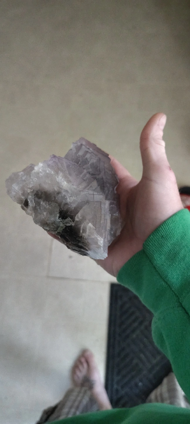 Selling a fluorite specimen. It's a beautiful piece with a light purple/gray color and interesting crystalline structure. It fits comfortably in the palm of your hand. It has some darker inclusions on one side. I have a huge collection of crystals, minerals and gemstones, I'm looking to give a big portion of it a new home...