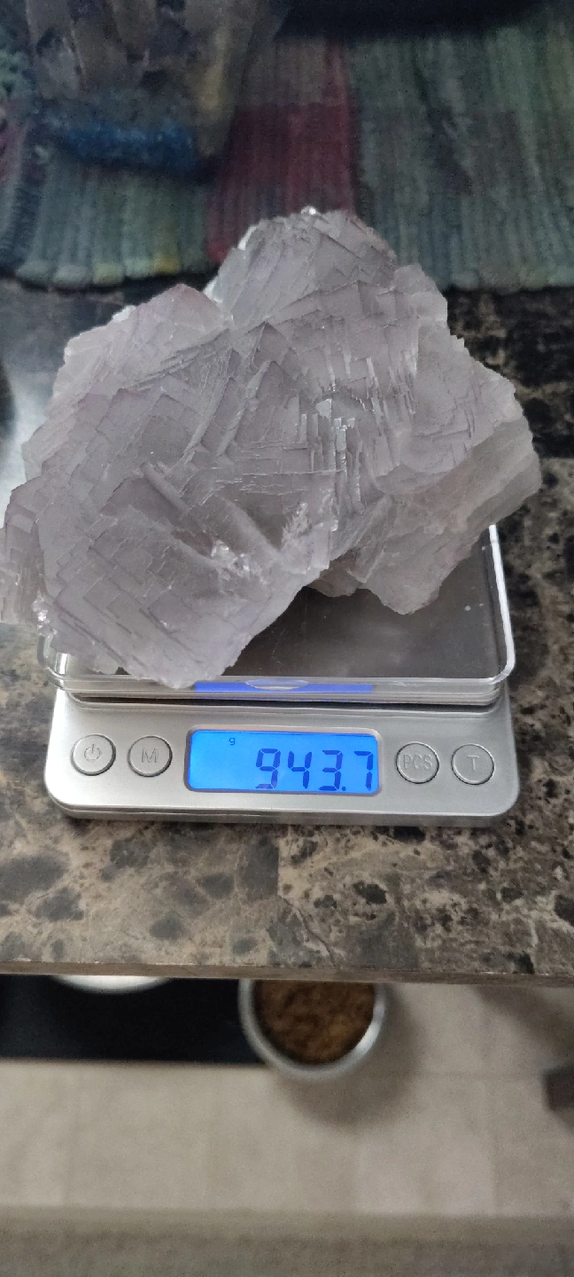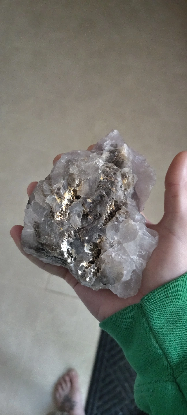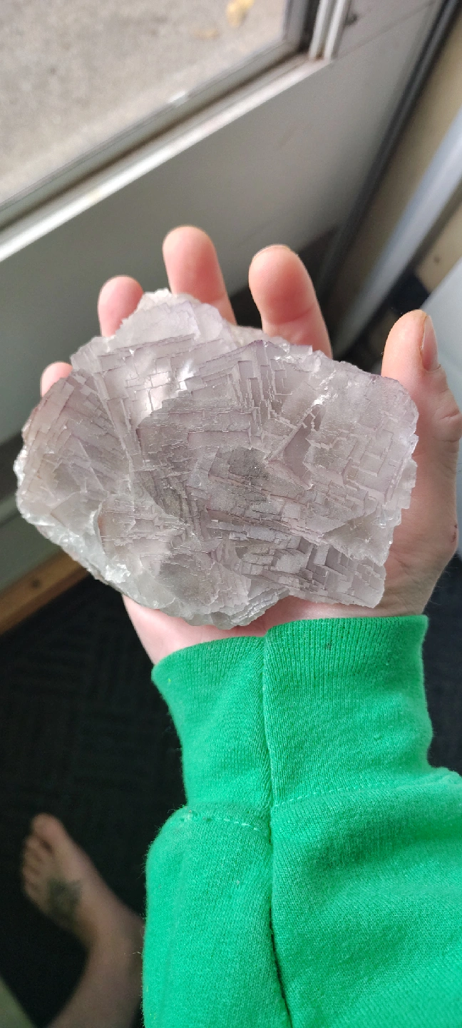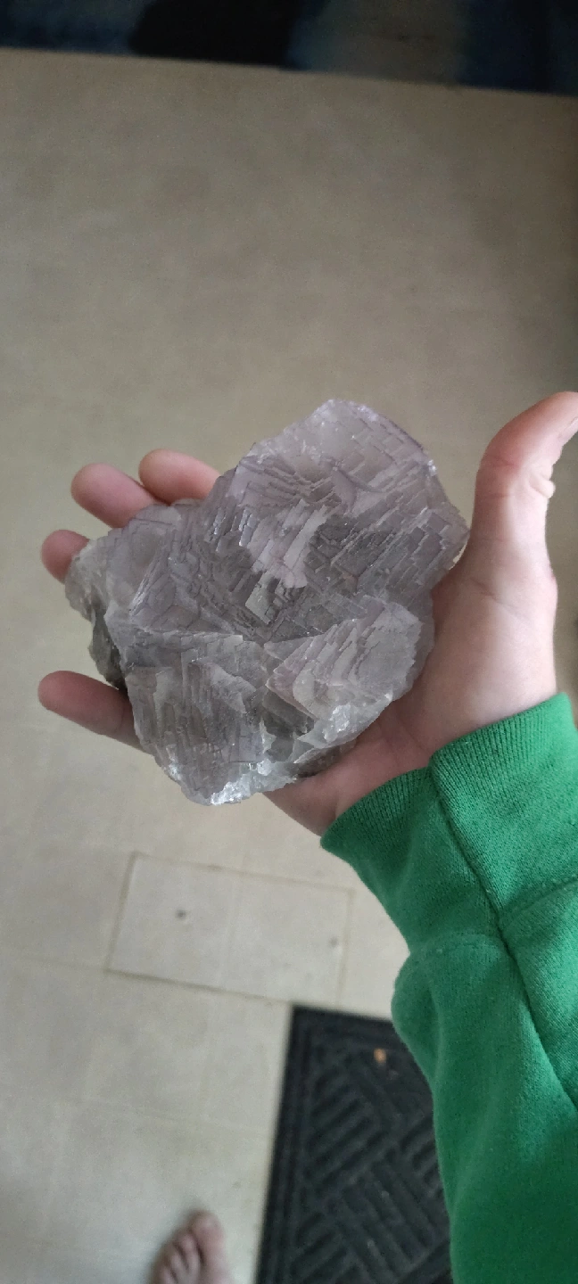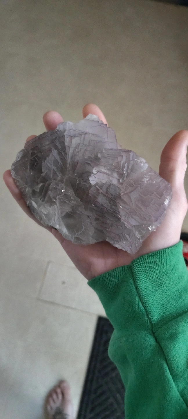 Selling a fluorite specimen. It's a beautiful piece with a light purple/gray color and interesting crystalline structure. It fits comfortably in the palm of your hand. It has some darker inclusions on one side. I have a huge collection of crystals, minerals and gemstones, I'm looking to give a big portion of it a new home...