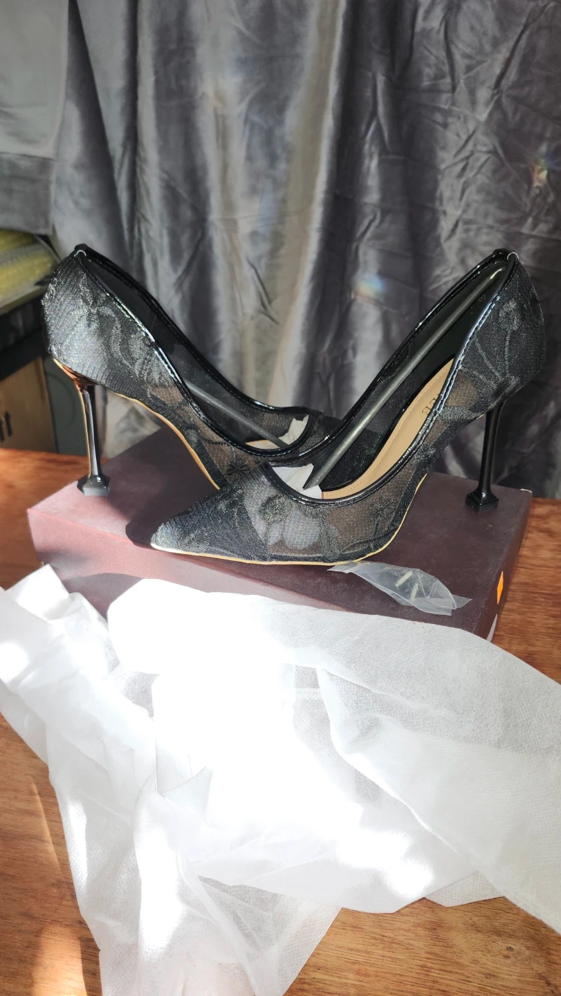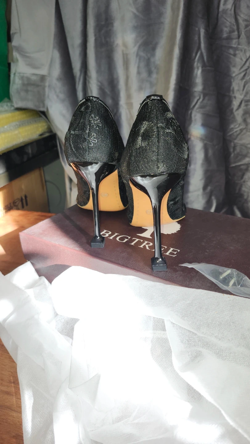 Never worn. Elegant black lace stiletto heels from BIGTREE. These shoes feature a pointed toe and a sleek stiletto heel. They're perfect for dressing up any outfit for a night out! Size 40 European, 8.5 - 9 Canadian sizing.