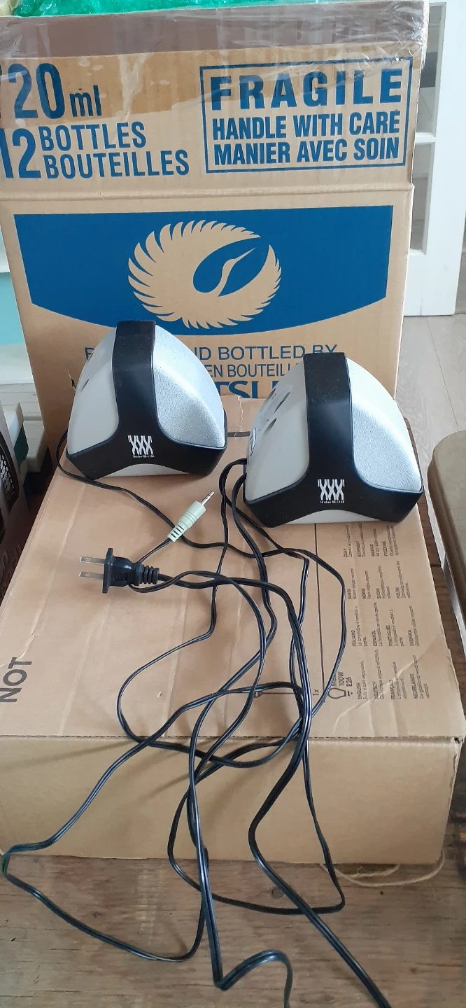 Compact computer speakers from Logitech. They plug into a standard audio jack and a wall outlet for power. Great for boosting your computer's audio output!