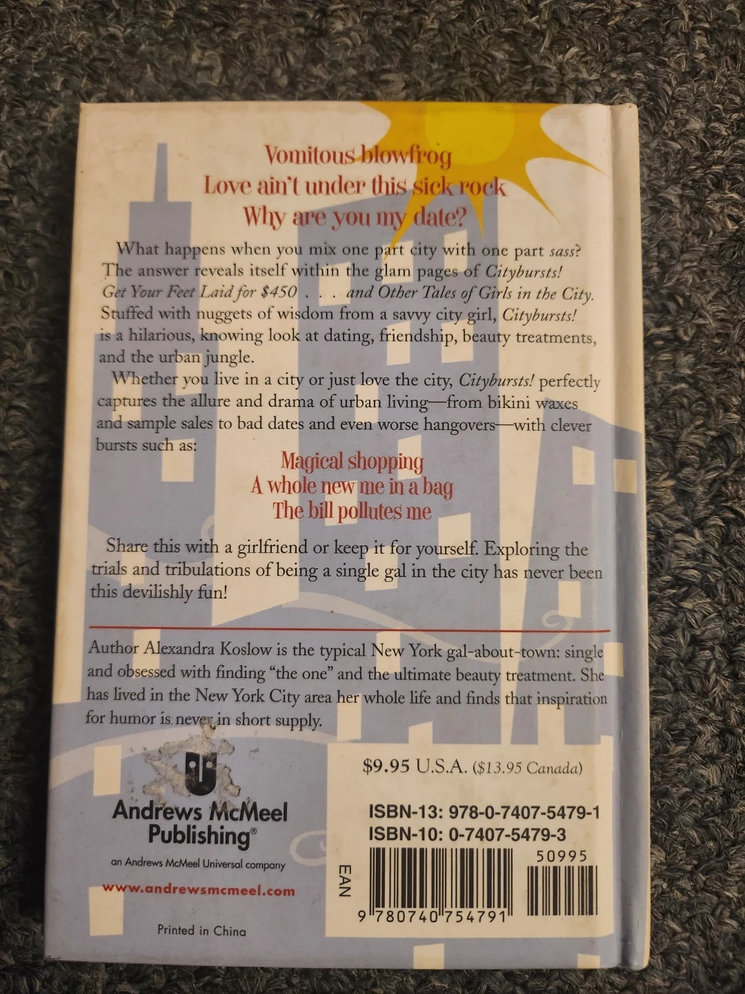 This book explores the allure and drama of urban living through tales of dating, friendship, and urban adventures. It captures the trials and tribulations of being a single gal in the city. Author Alexandra Koslow is a New York gal about town.