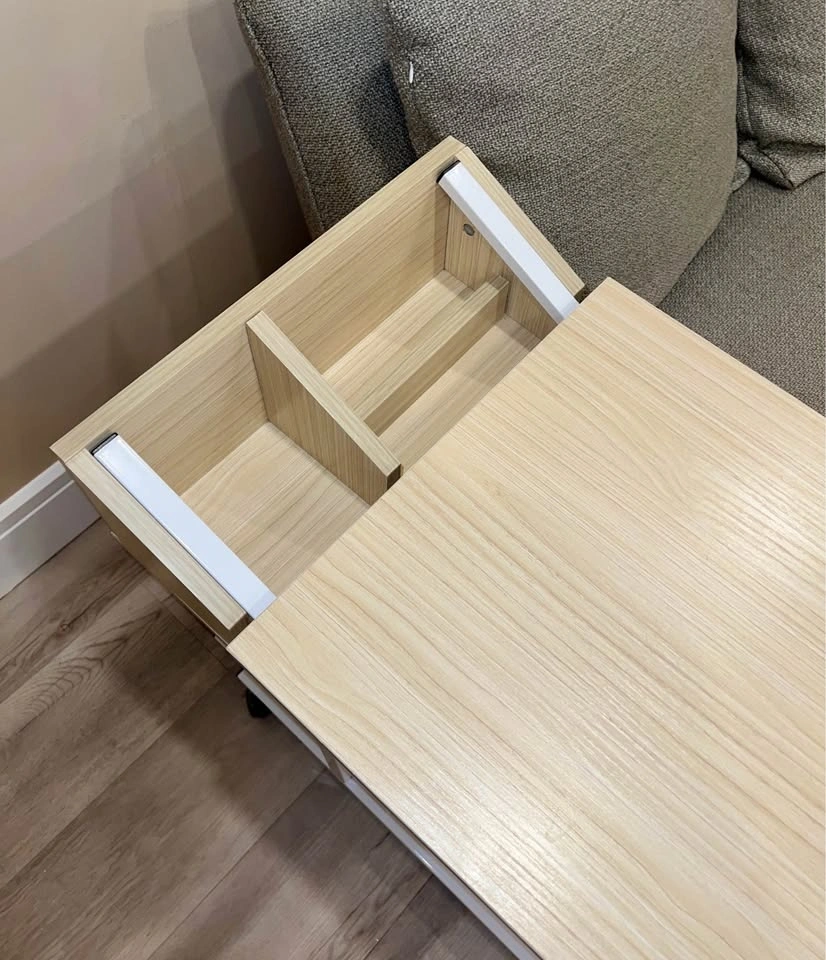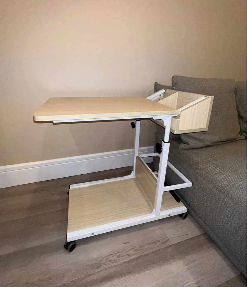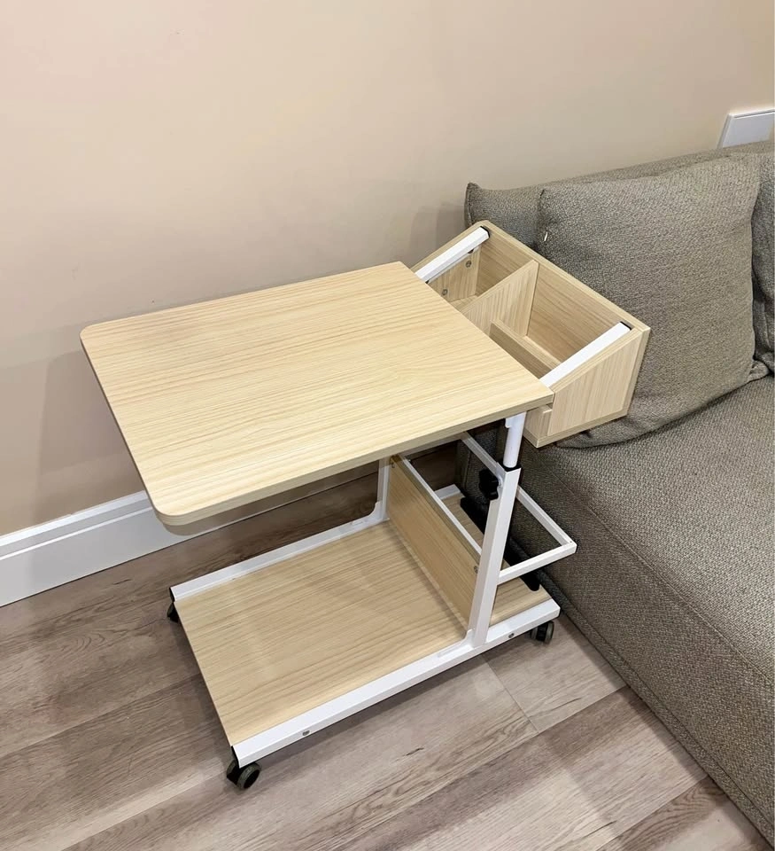 Adjustable C-Shaped Side Table with Wheels & Storage