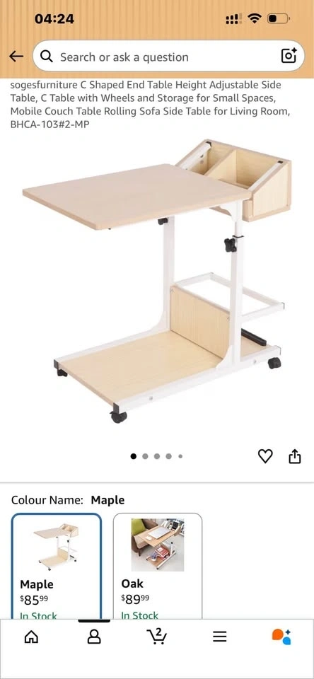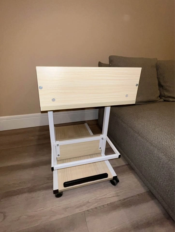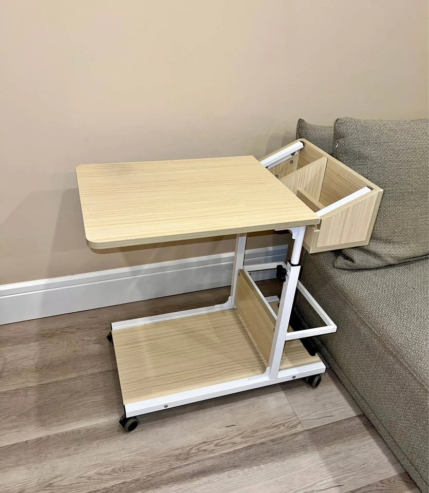 Adjustable C-Shaped Side Table with Wheels & Storage