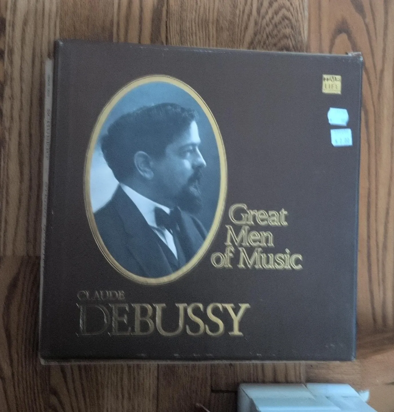 This is a Claude Debussy vinyl record from the Great Men of Music series. It features a portrait of the composer.