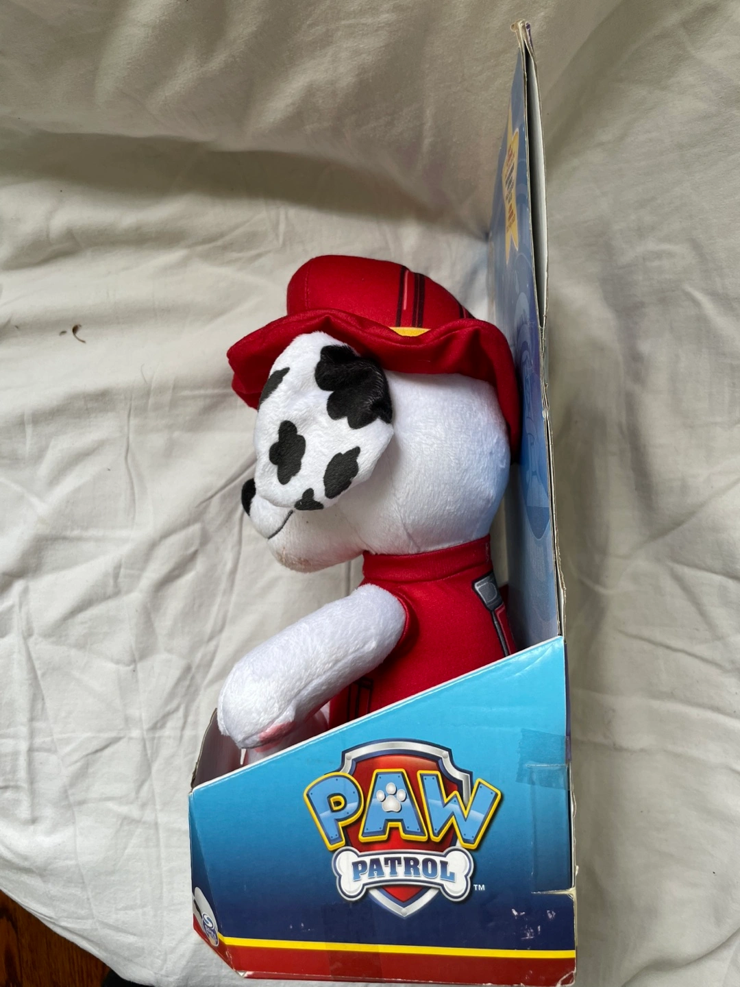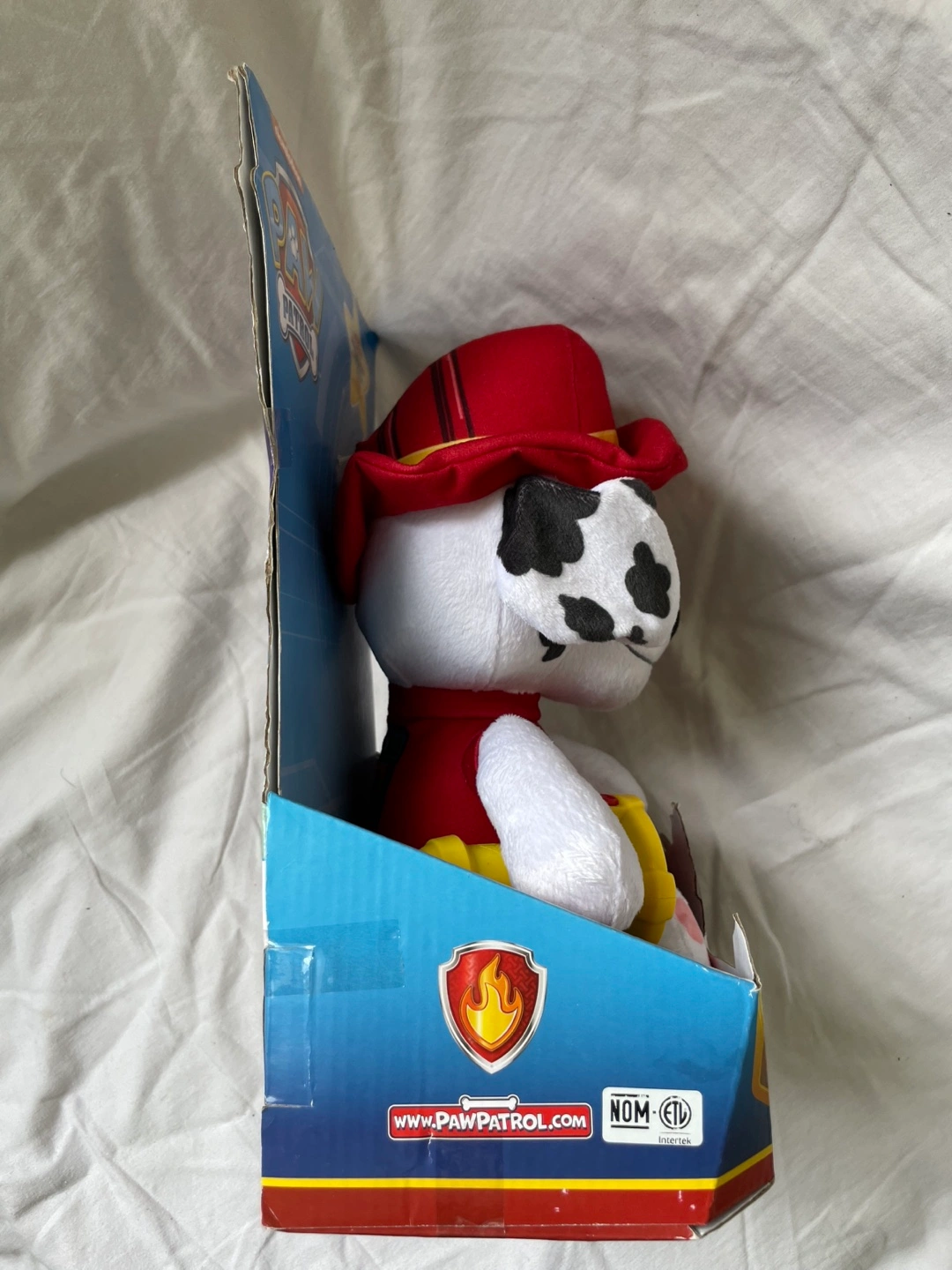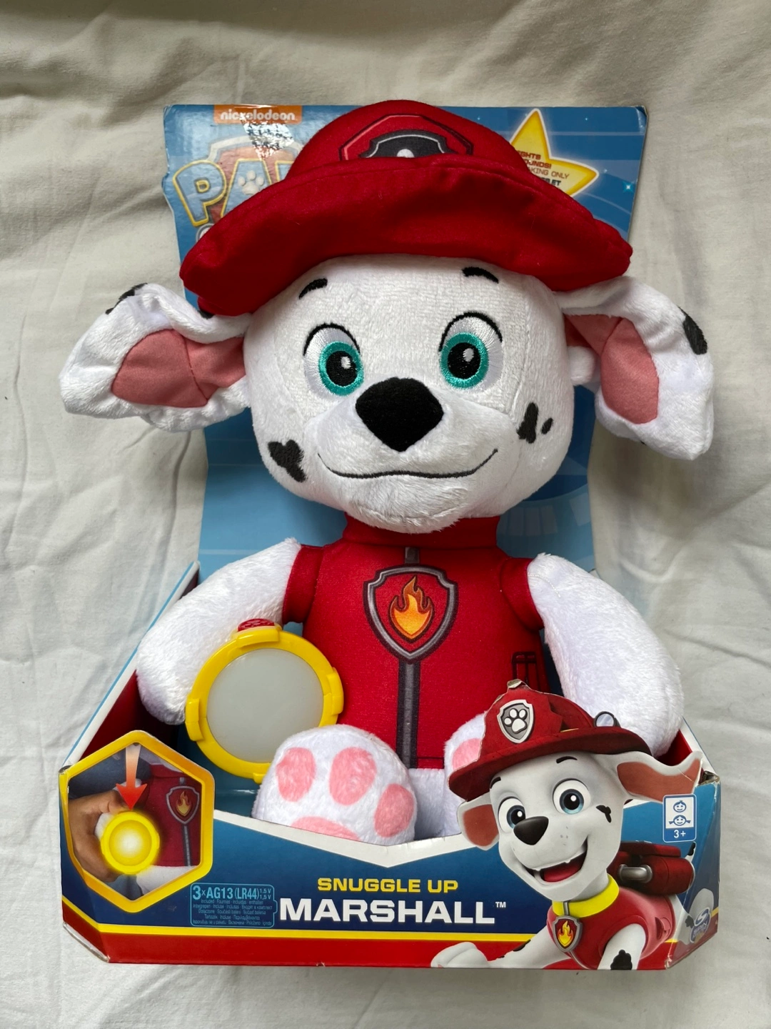 Selling a brand new Paw Patrol Snuggle Up Marshall plush! It's still in its original packaging and ready for a new home. This cuddly Marshall is perfect for bedtime snuggles and includes a light-up badge to help kids feel safe and secure at night