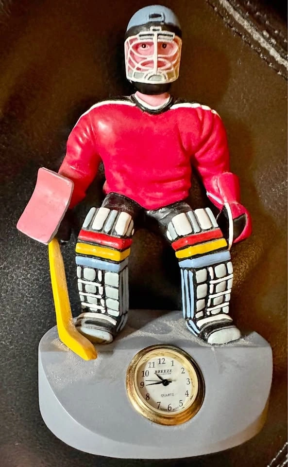 Vintage novelty goalie figure with a working clock. Perfect for a man cave! Pick up at the front of the Sobeys Liquor store entrance at 2335 162 Ave SW in Bridlewood. This is a safe and well-lit location.