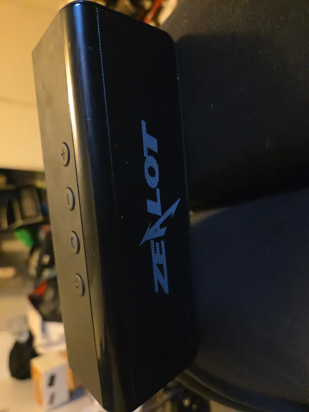 Zealot portable Bluetooth speaker. Black colour. It's a handy size for taking music on the go. The controls are on the side.