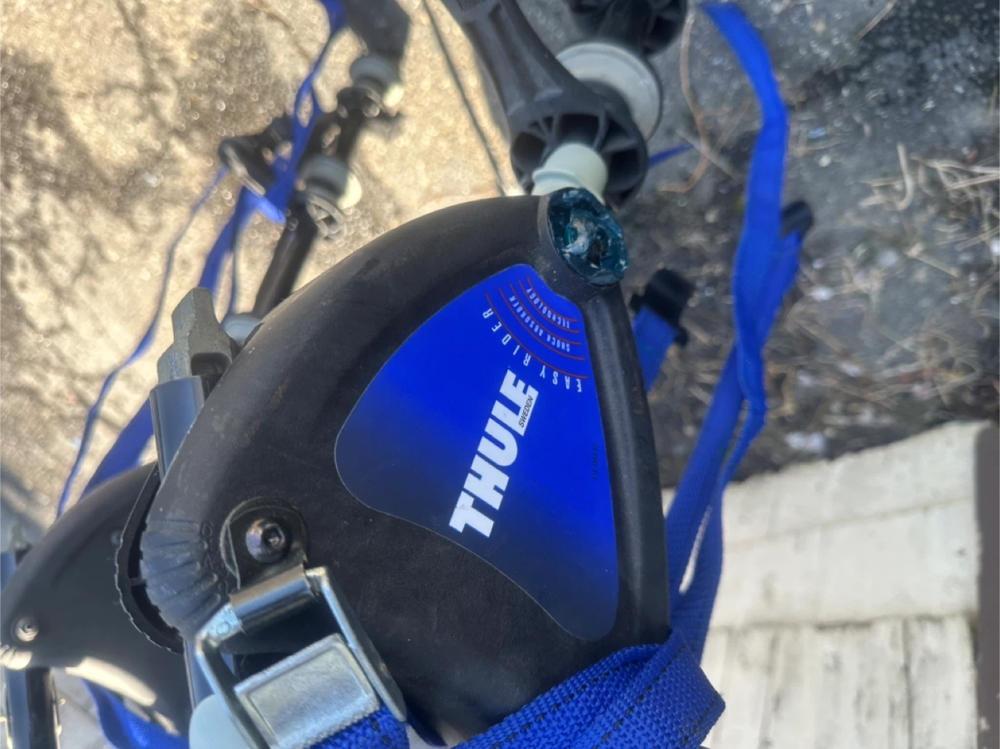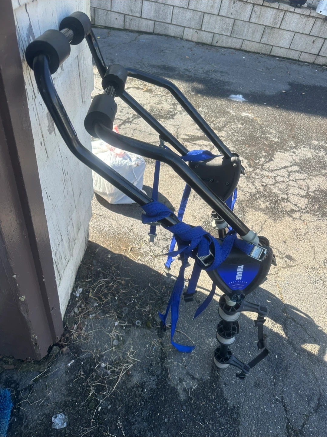 Thule Easy Rider bike rack for your vehicle. Features adjustable straps and a sturdy frame. This rack is designed to safely transport your bicycles on trips. It's ideal for car travel with bikes!