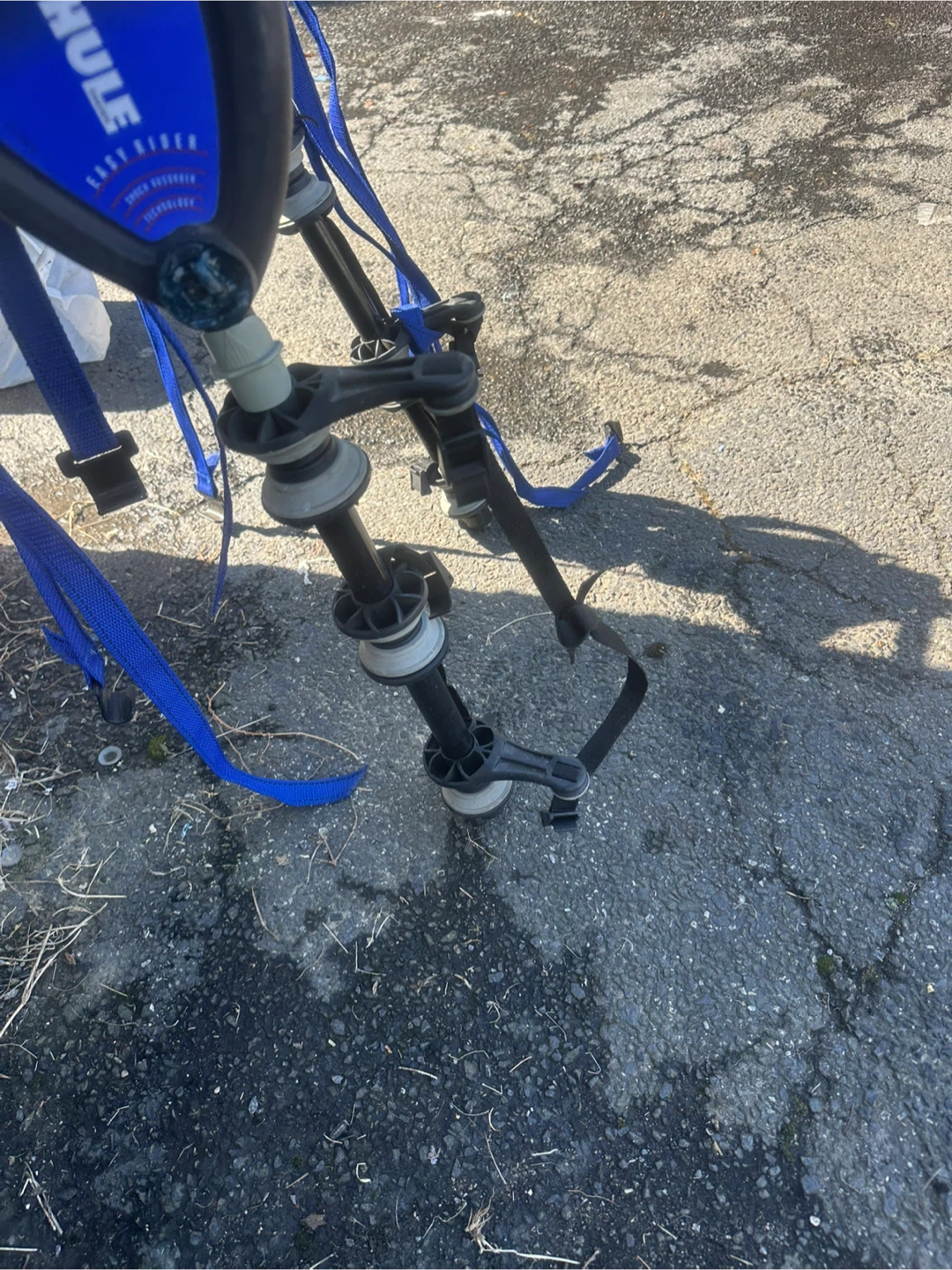 Thule Easy Rider bike rack for your vehicle. Features adjustable straps and a sturdy frame. This rack is designed to safely transport your bicycles on trips. It's ideal for car travel with bikes!