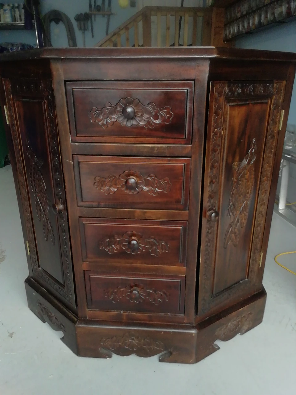 Solid wood with carvings see photos.