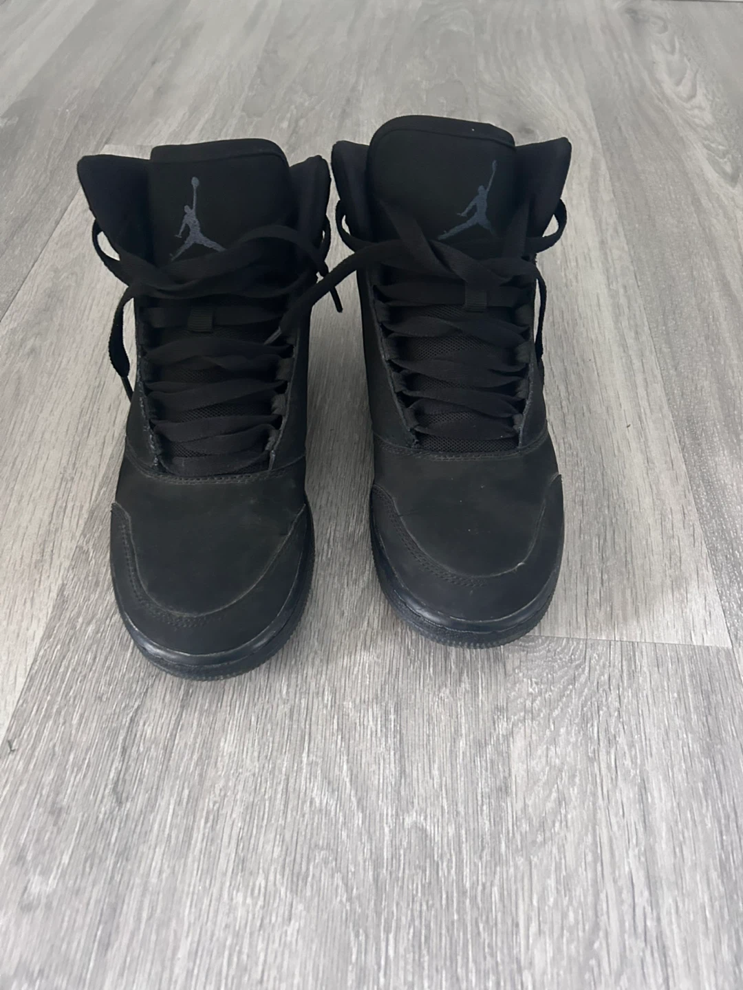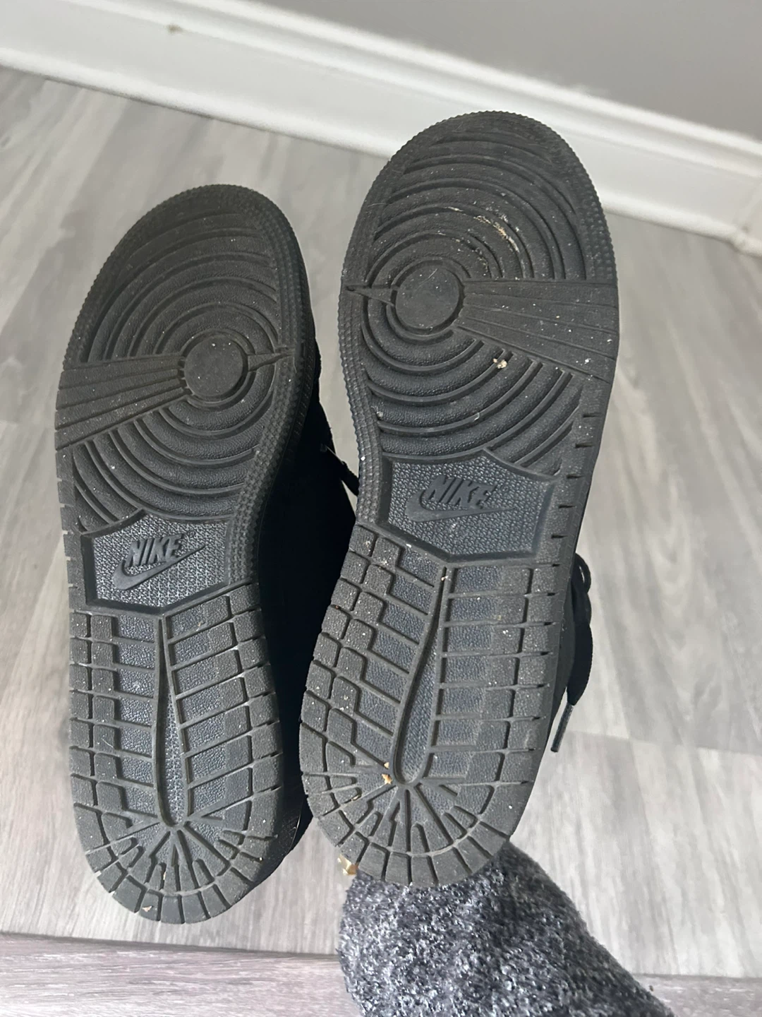 Selling a pair of Nike Air Jordan 1 Mid sneakers in black! They are a youth size 6Y, which is equivalent to a women's size 7.5. These shoes have a classic look and are in good condition, perfect for everyday wear!