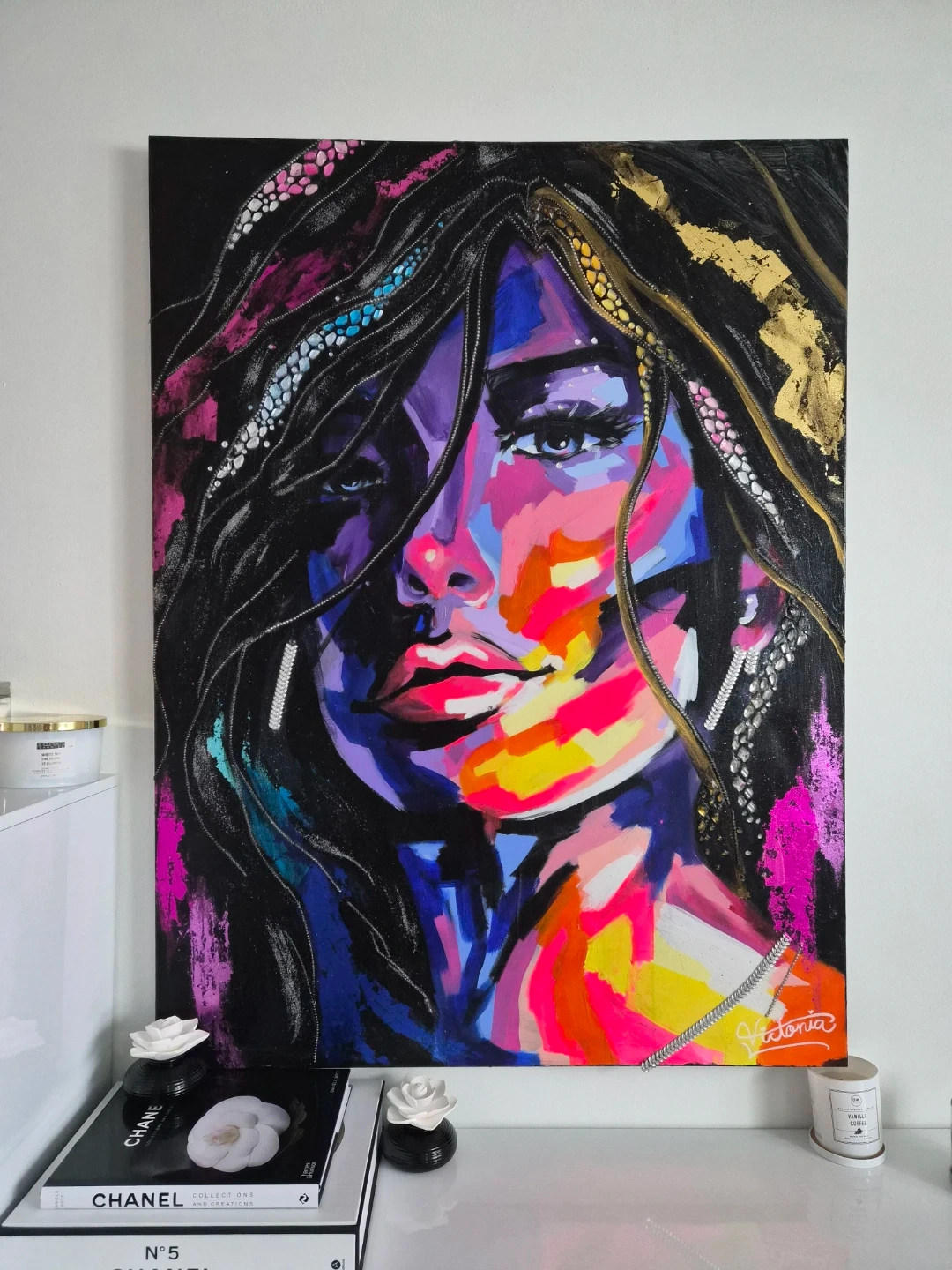 Unique abstract art featuring a woman's portrait in bold colours and textures. This eye-catching canvas adds a splash of personality to any space. Created by yours truly "Victoria Lukasiuk"