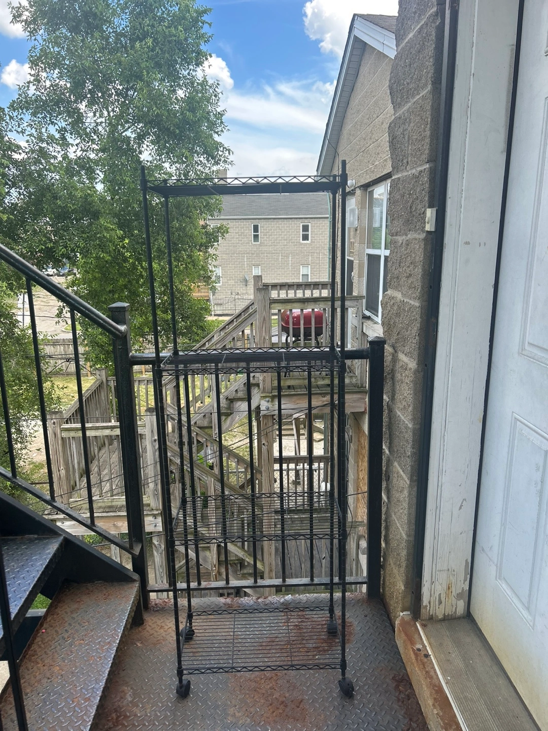 Here's a black metal rolling shelf. It's great for adding extra storage space in your home or garage. It has multiple tiers and wheels for easy movement. Perfect for organizing items!