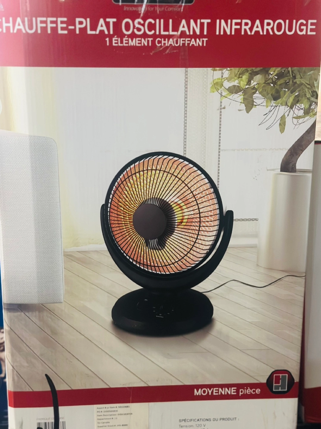 Infrared heater. Oscillating function. Compact design. Perfect for small spaces. Easy to use controls.