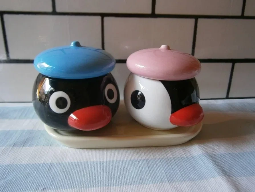 Pingu Pinga ceramic jars with lids and tray