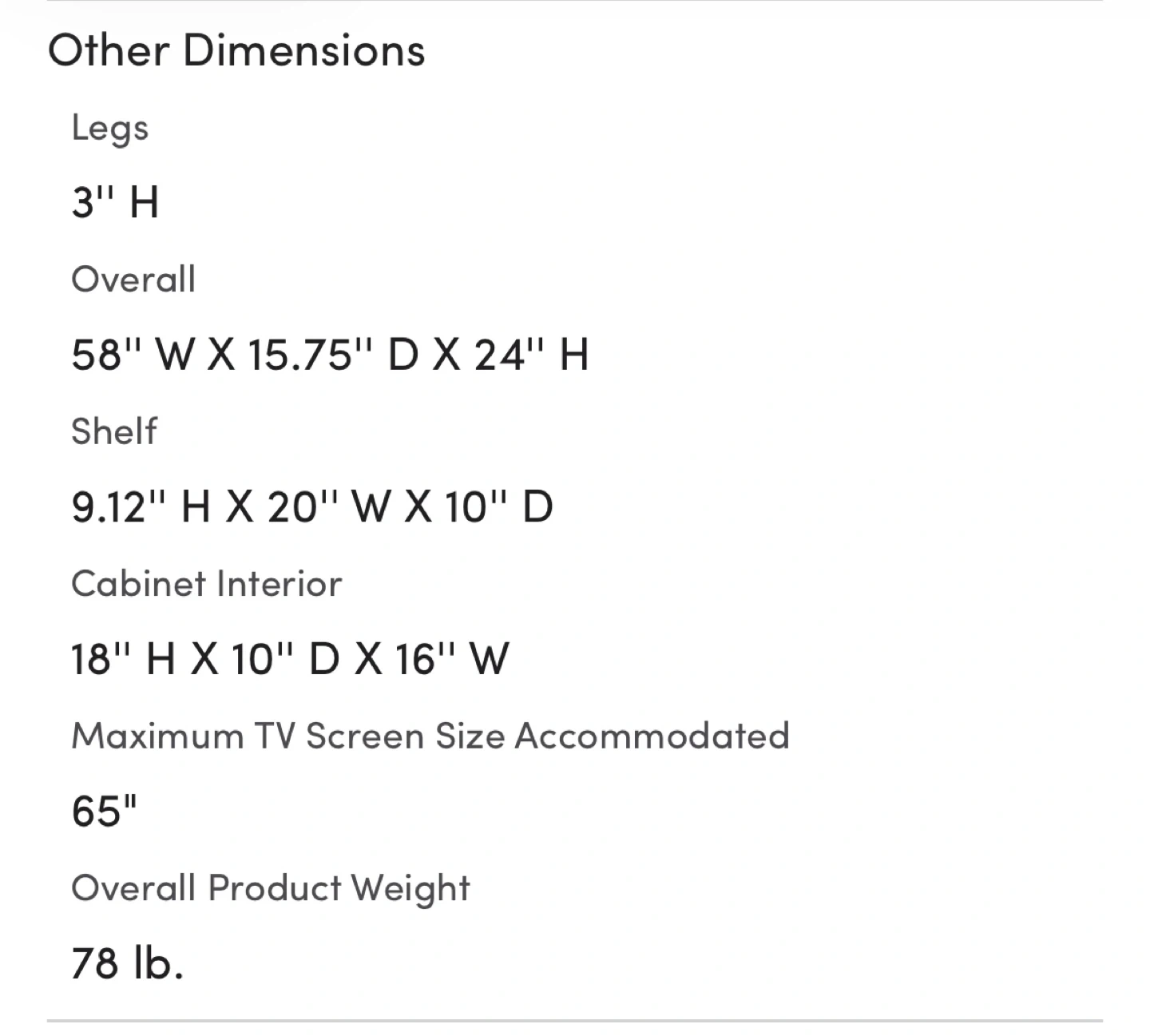 Selling my TV stand as I’m moving away. I’ve only had it for about a year and it still looks absolutely brand new. Purchased from Wayfair. Please see the last images I’ve attached from Wayfair for dimensions. Colour is Grey Wash.