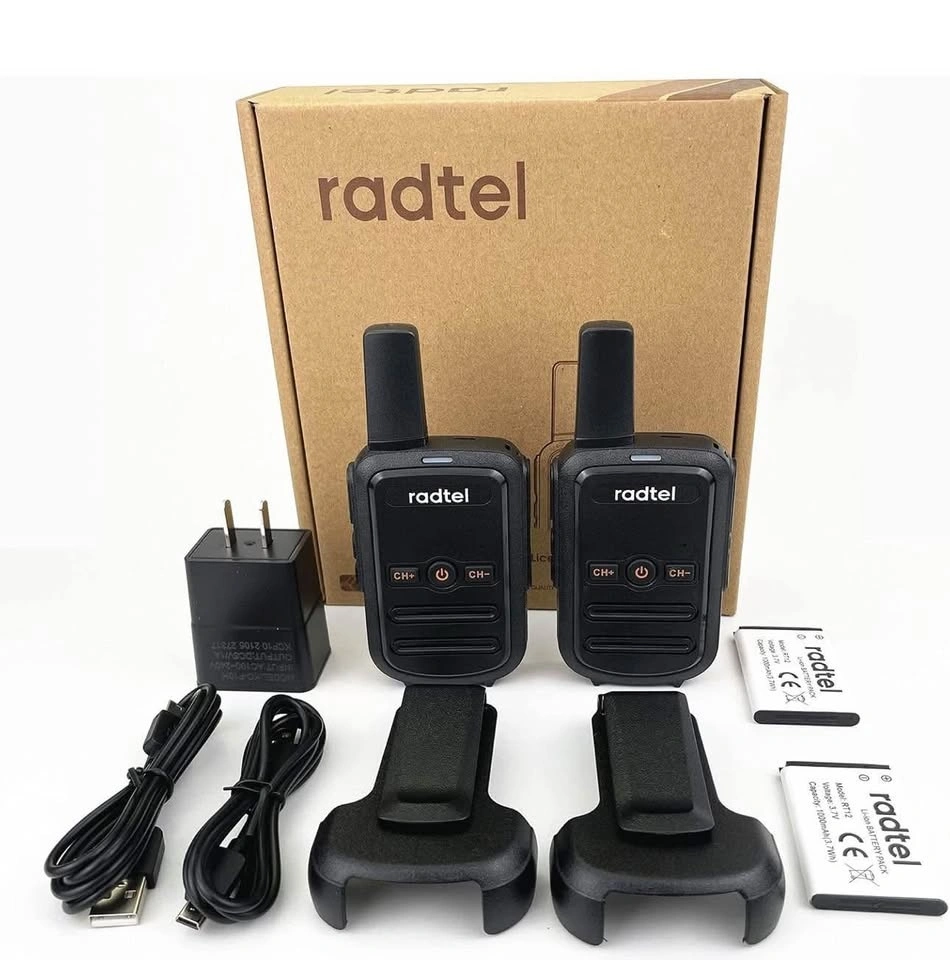 BNIB rechargable Radtel RT12 Walkie Talkies pair. High quality. Stay connected anywhere. Clear sound. Powerful, long distance coverage , compact and lightweight. Very easy to use. Great for outdoors like camping, hiking, fishing. Communicate easily save money when traveling. Indoors like under buildings where there are no cell coverage. Don’t need to pay subscription. For families, for work or for fun any where anytime. Life saver for emergencies